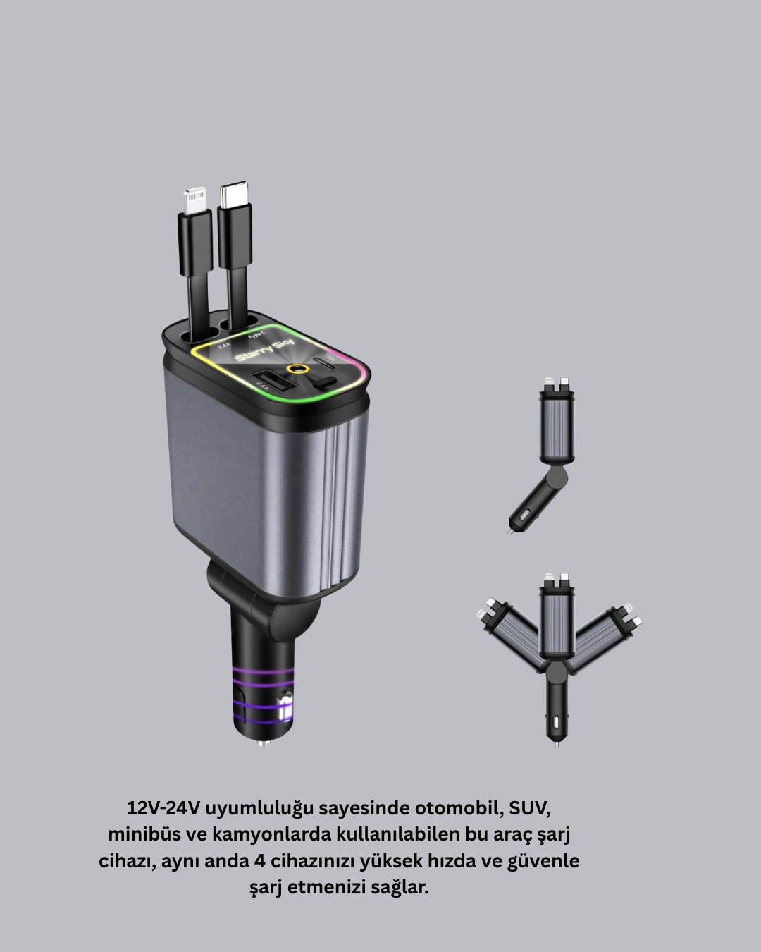 Çiftli Araba Bardak Tutucu Karbon Fiber Görünümlü 360° Ayarlı