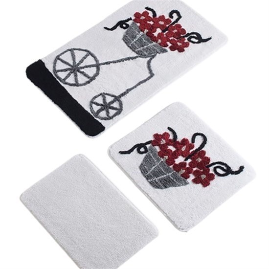 Alaçatı Kırmızı 3Lü Set Banyo Halısı-20138