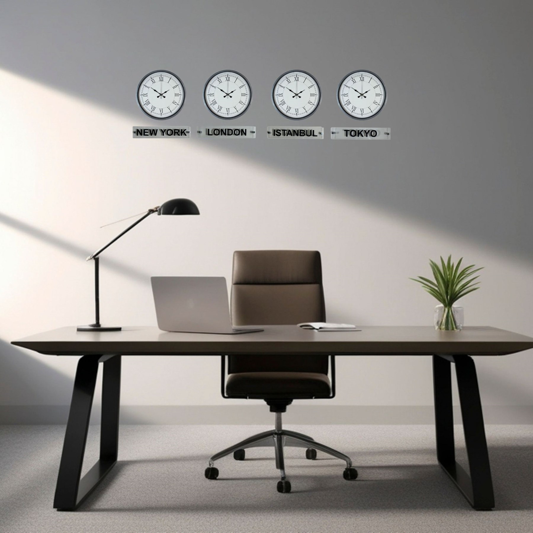 Gri 4’lü 36 Cm Tabelalı Dünya Saatleri