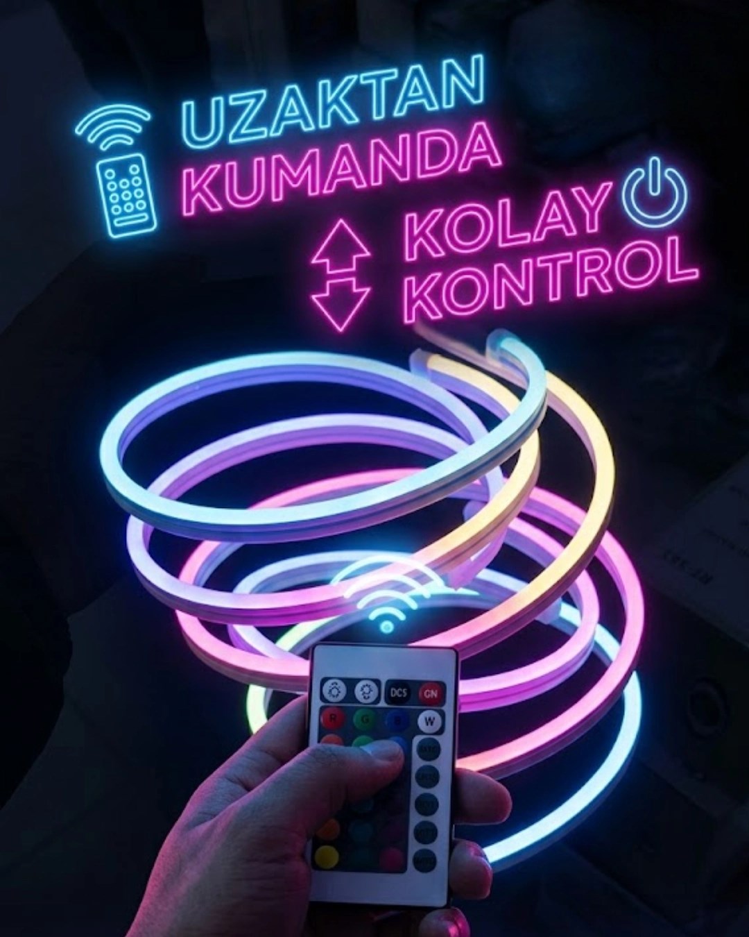 Rgb Akıllı Led Neon Şerit Işık 3 Metre Uzaktan Kumandalı Ve Telefon Kontrollü Renkli Aydınlatma