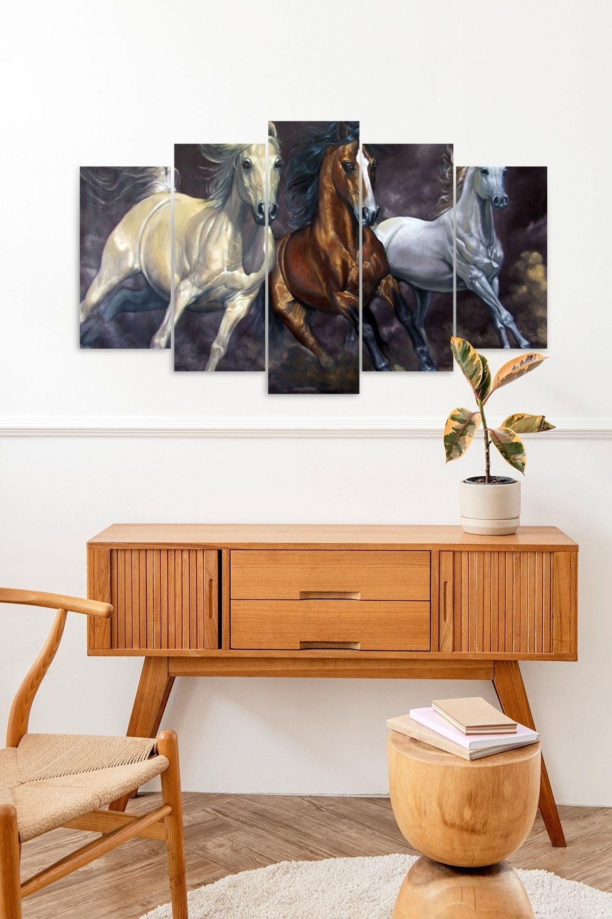 - Modern dekorasyonun vazgeçilmez bir parçası olan bu 5 parçalı ahşap tablo, mekanınıza şıklık ve sıcaklık katar; - Dayanıklı MDF malzemesi ile uzun ömürlü kullanım sunar ve kolay temizlenebilir yüzeyi sayesinde pratik bir bakım imkanı sağlar; - Her bir parçada detaylı işçilikle işlenmiş at temalı tasarım, evinizin veya ofisinizin atmosferini zenginleştirir; - Modern stil sahibi olan bu tablo, çağdaş yaşam alanlarına uyum sağlayarak estetik bir görünüm sunar;