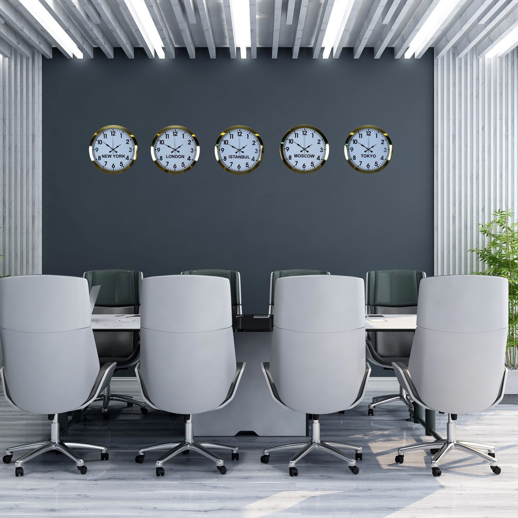 Lüks Premium Gold 5’li Metal 36 cm Dünya Duvar Saatleri