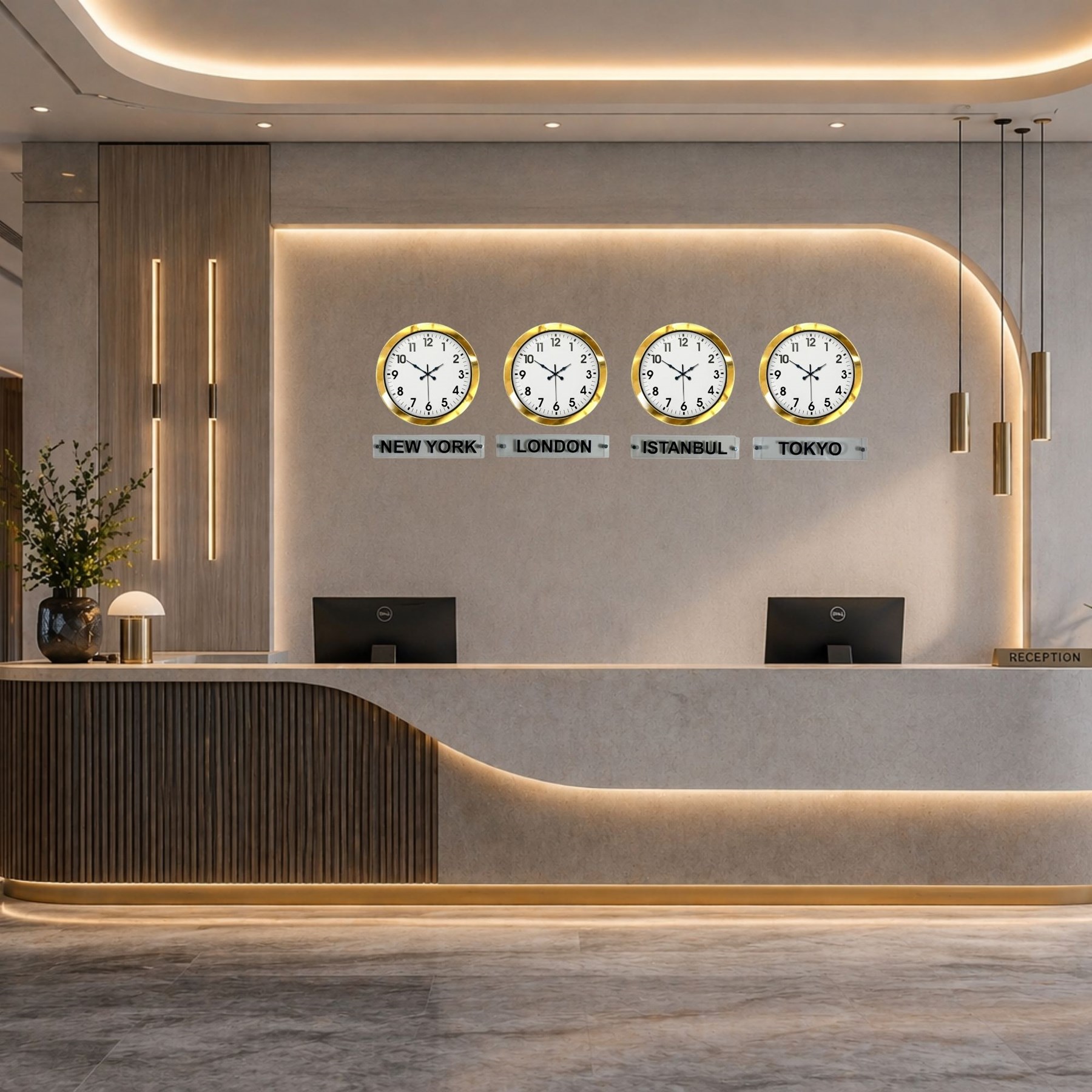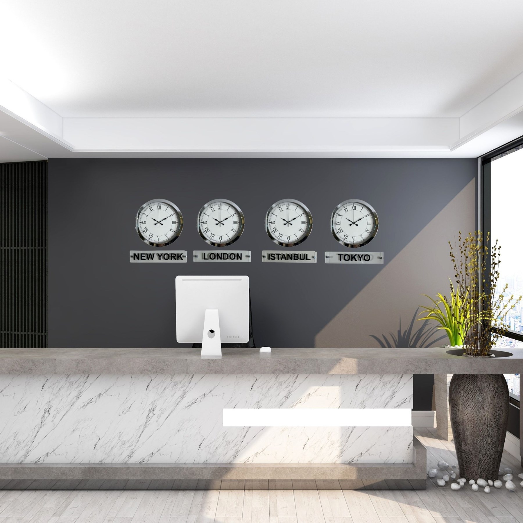 Krom Series 36 Cm Metal Tabelalı Dünya Saatleri Seti