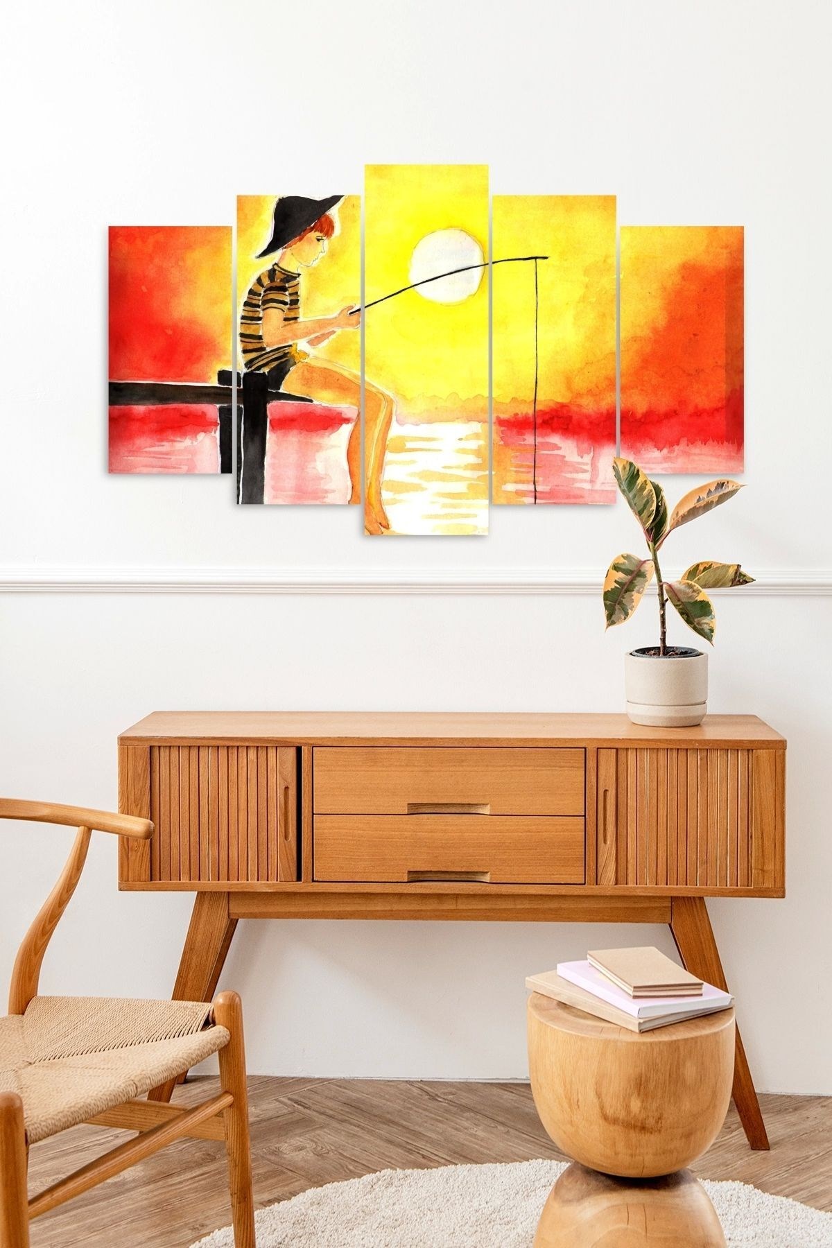 Modern dekorasyonun vazgeçilmez bir parçası olan bu 5 parçalı MDF tablo, evinizin veya ofisinizin atmosferini canlandırır; Kaliteli MDF malzemesi sayesinde uzun ömürlü kullanım sunar ve dayanıklılığı ile ön plana çıkar; Balık tutan insan figürleriyle süslenmiş bu tablo, deniz ve doğa severlerin beğenisine hitap eder; Modern tasarımıyla mekanınıza çağdaş bir hava katar ve dekorasyonunuza şık bir dokunuş ekler;