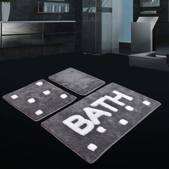 Bath Füme 3Lü Set Banyo Halısı Klozet Takımı Paspas-20336