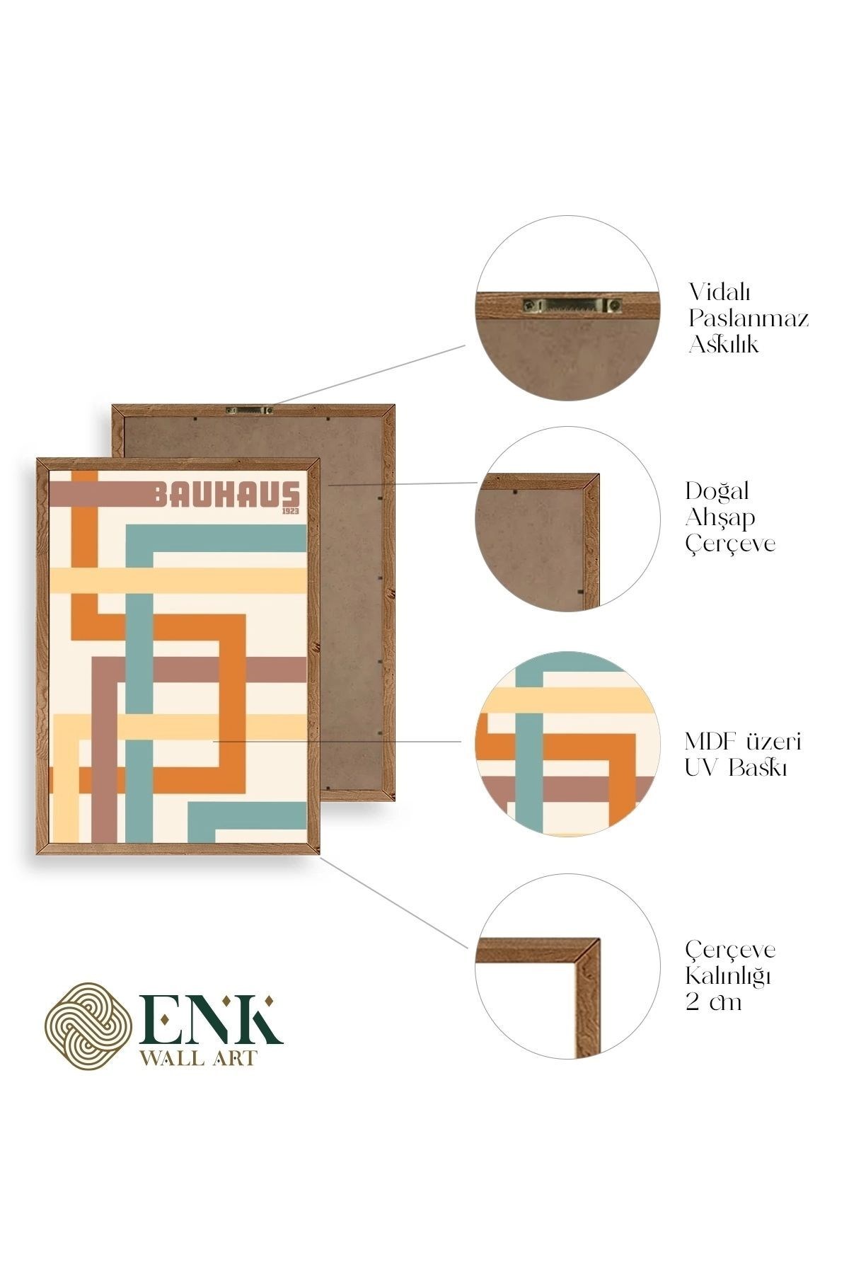 Tablolarımız gerçek ahşap çerçevelidir, çerçeve görünümlü değildir. ; ENK Wall Art Olarak Ahşap Çerçeveli Tablolar Üretiyoruz. ; Tablolarımız tek parça, 3 Parça, 5 Parça ve daha çok kategoride tasarımcılarımız tarafından ev ve ofisleriniz duvarları süslemek için tasarlanmaktadır. ; Ahşap Çerçeveli Duvar Tabloları ile yaşam alanlarınıza yepyeni bir görünüm kazandırın. ; Yıllarca dayanacağından emin olduğumuz sağlam çerçevelere sahip yüksek kaliteli ahşaptan üretilmiştir. ; İster bir köşeyi süslemek isteyin, ister evinizi yenilemek , bu ahşap tablolar herhangi bir yaşam alanına stil ve işlev getirecektir. ; Duvara kolay bir şekilde monte edilir. ; Uzun ömürlü kullanım için sağlam ahşap çerçeveden yapılmış, dayanıklı ve güçlü. ; Duvara monte edilebilir tasarımı, yaşam alanlarında veya yatak odalarında duvara kolayca asılmasını sağlar. ; Pürüzsüz üst yüzeyi temiz kalmayı kolaylaştırır. ; Herhangi bir stile uyacak şekilde çeşitli renklerde gelir. ; Kolay yeniden düzenleme için hafif ve portatif. ; Küçük oturma odaları veya dar alanlar için mükemmel boyut. ; Eve taşınma hediyesi olarak idealdir. ; Herhangi bir evin dekorunu süslemek için harika bir yol. ; Herhangi bir modern veya çağdaş iç tasarıma mükemmel bir katkı. ; Tablo içi 3 mm mdf (ahşap) malzeme üzeri uv baskıdır. ; Renkler canlı ve solma yapmaz. ; Kırılma, bükülme ve çizilmeye karşı dayanıklıdır.;
