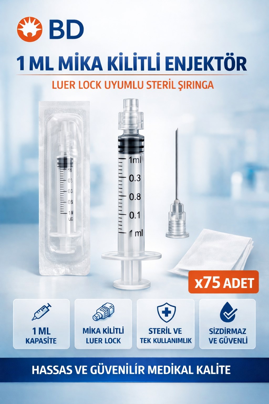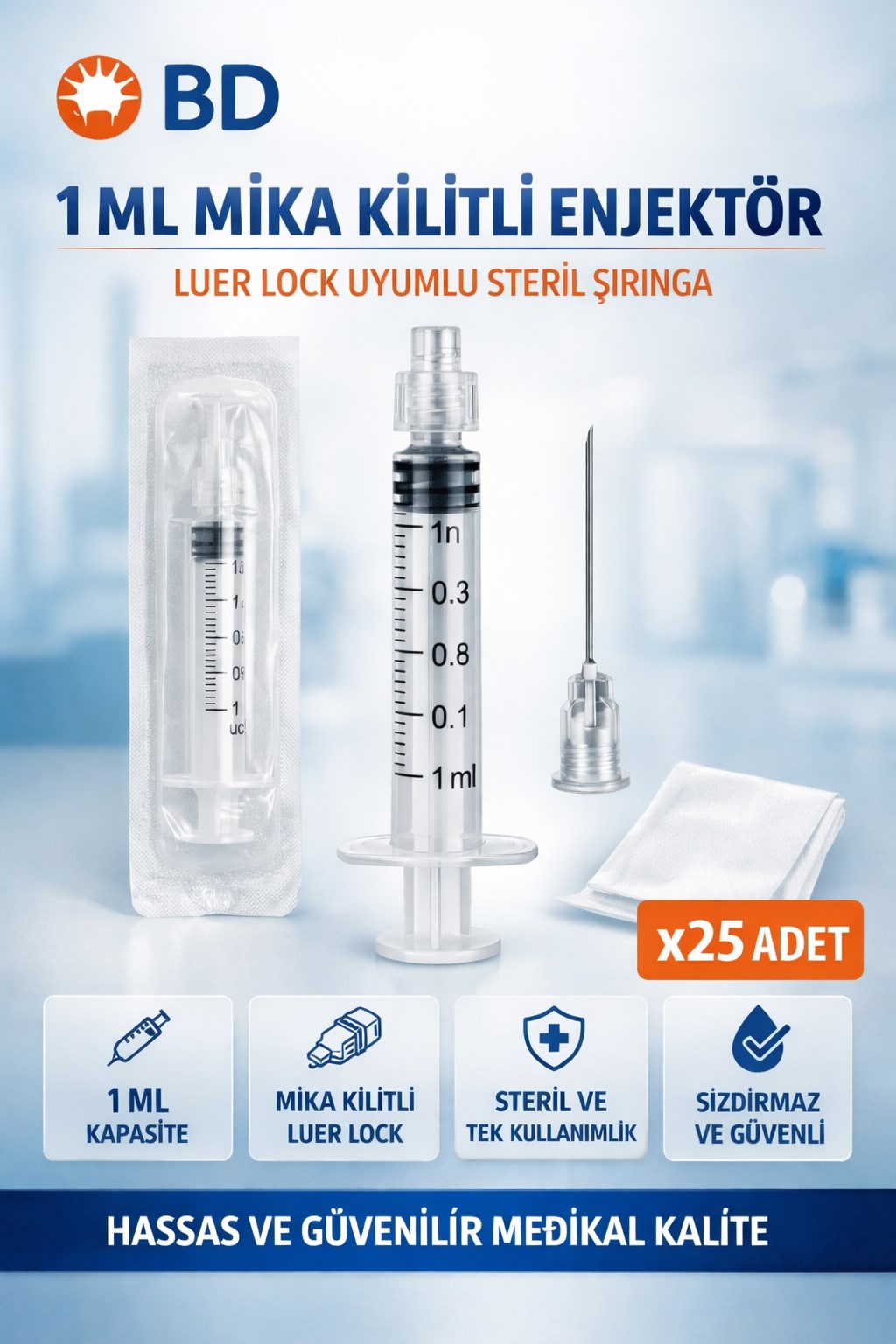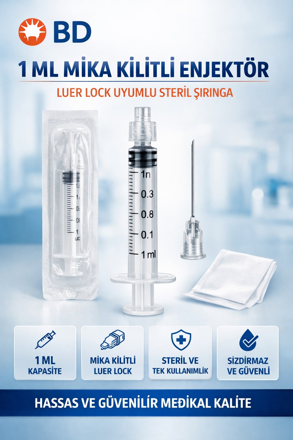 BD 1 ML Mika Kilitli Enjektör Luer Lock Şırınga