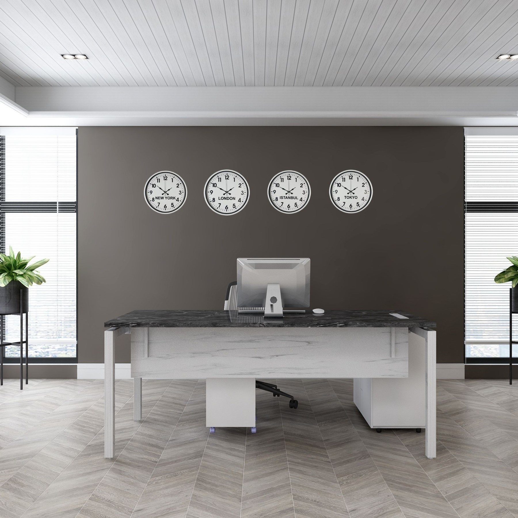 New York, London, Istanbul ve Tokyo saatlerini aynı anda gösteren bu set; özellikle oteller, resepsiyon alanları, ofisler ve uluslararası çalışan işletmeler için ideal bir çözümdür. Minimal tasarımı sayesinde dikkat dağıtmaz, aksine düzenli ve kurumsal bir atmosfer oluşturur.