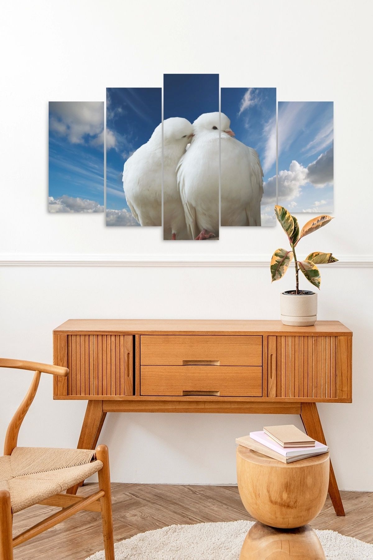 - Modern tasarımıyla ev ve ofis dekorasyonunuza şıklık katan Beyaz güvercin aşk 5 parçalı MDF tablo, estetik görünümüyle dikkat çeker; - Yüksek kaliteli MDF malzemesi sayesinde uzun ömürlü kullanım sunar ve dayanıklılığıyla ön plana çıkar; - Her bir parçada detaylı işçilikle işlenmiş ahşap malzeme, tablonun estetik değerini artırırken aynı zamanda doğal bir dokunuş sağlar;