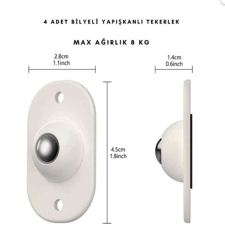 Yük taşıma kapasitesi: Tek tekerlek 2,0 kg yük kapasitesine dayanabilir. Dört tekerlek birlikte maksimum 8,2 kg yük kapasitesi sağlar. daha fazla tekerlek de ekleyebilirsiniz.