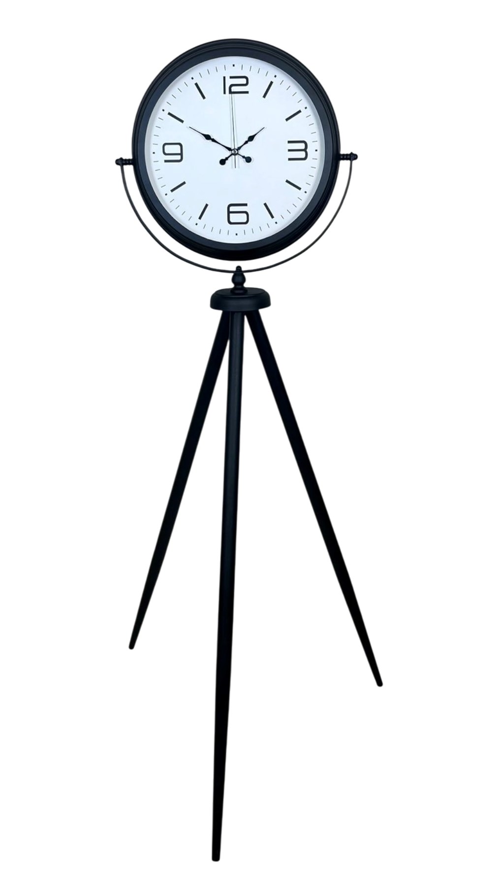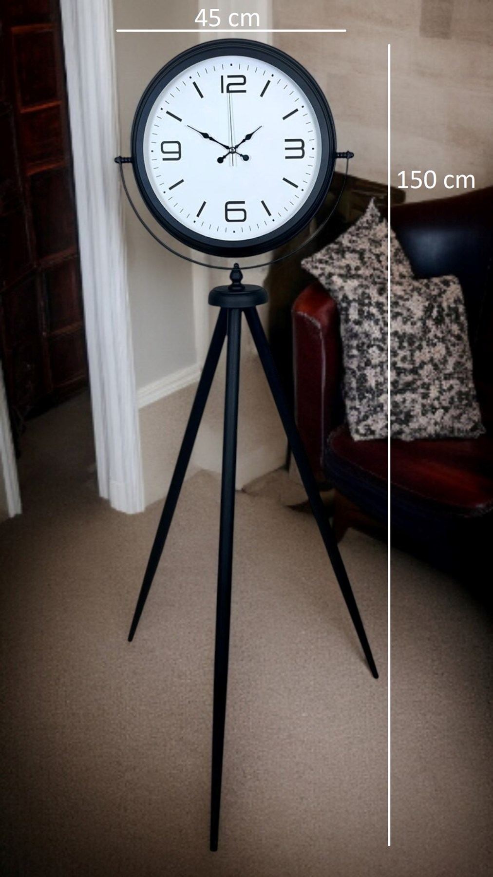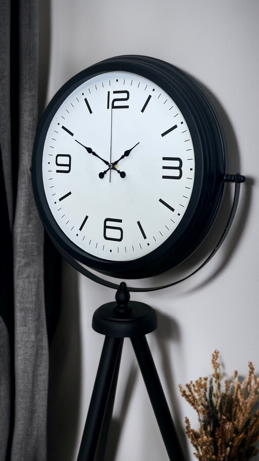 Bulunduğu ortama anında stil katan Siyah Tripod Ayaklı Dekoratif Saat, 150 x 45 cm ölçüsüyle salon, ofis ve geniş yaşam alanlarında güçlü bir dekor etkisi oluşturur. Modern çizgileri, siyah metal tripod ayak tasarımı ve sade beyaz kadranı sayesinde hem minimal hem de loft/modern dekorasyonlara kusursuz uyum sağlar.