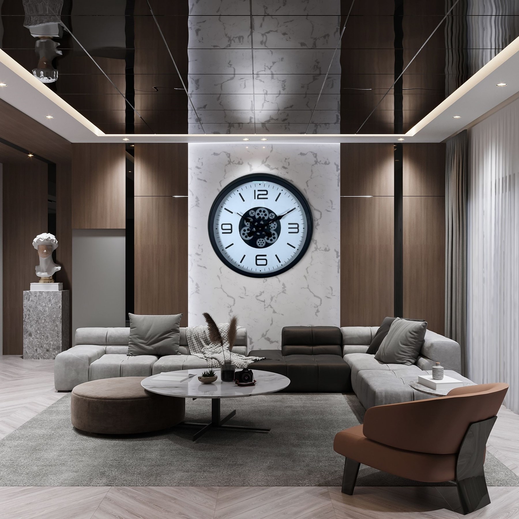 Üründe kullanılan gerçek cam yüzey, hem estetik hem de dayanıklılık sunarken, sessiz akar mekanizma sayesinde tik tak sesi olmadan huzurlu bir kullanım sağlar. Özellikle salon, yatak odası, mutfak ve ofis gibi alanlar için ideal bir tercihtir.
