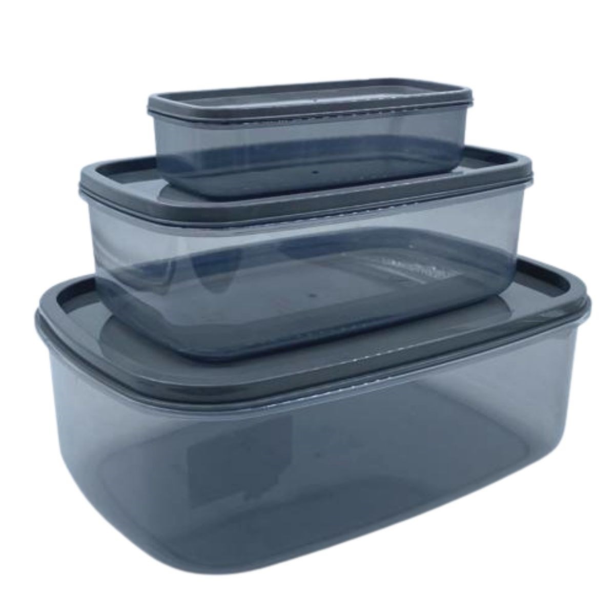 BUFFER® 3lü Dikdörtgen Füme Şeffaf Sızdırmaz Kilitli Erzak Bakliyat Gıda Saklama Kabı Seti -AK530