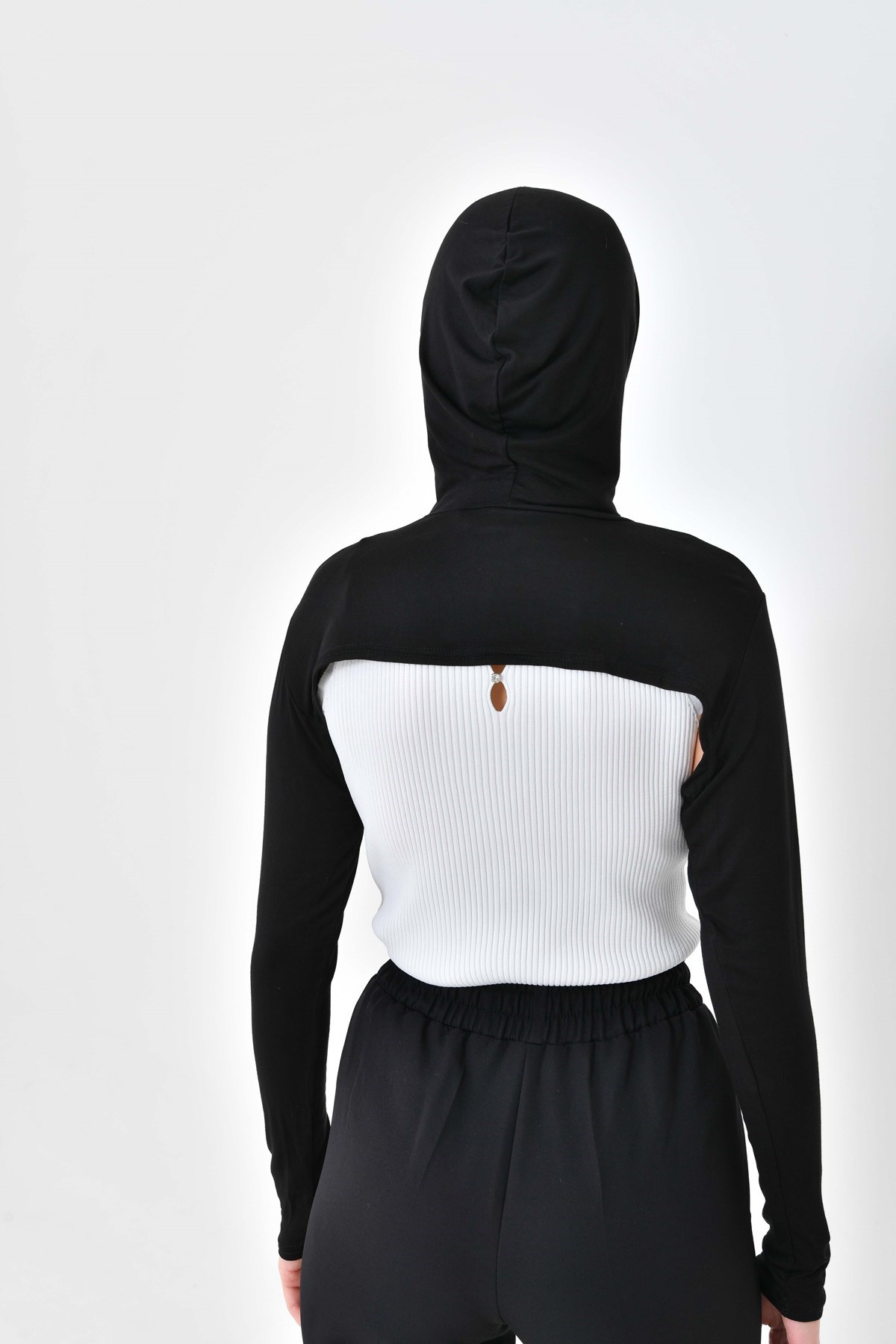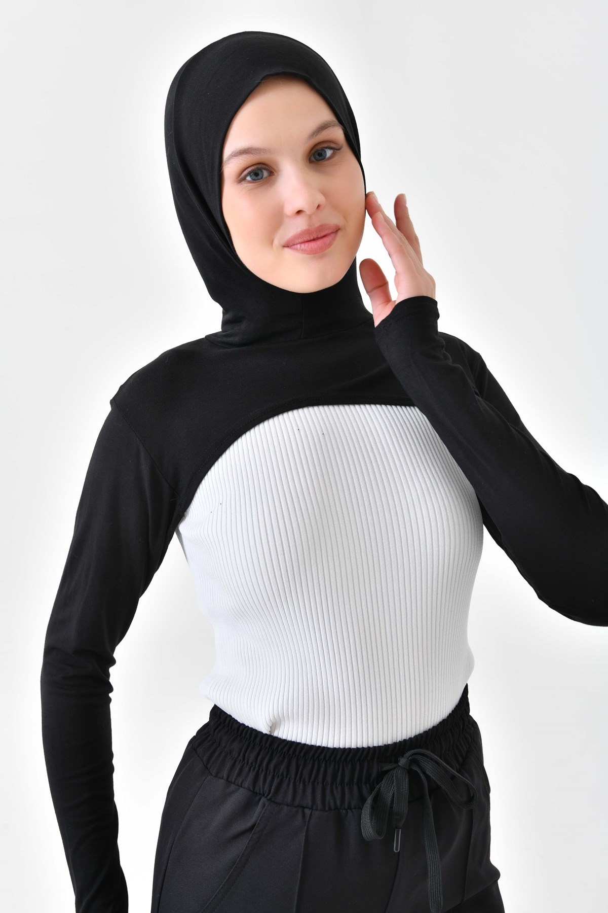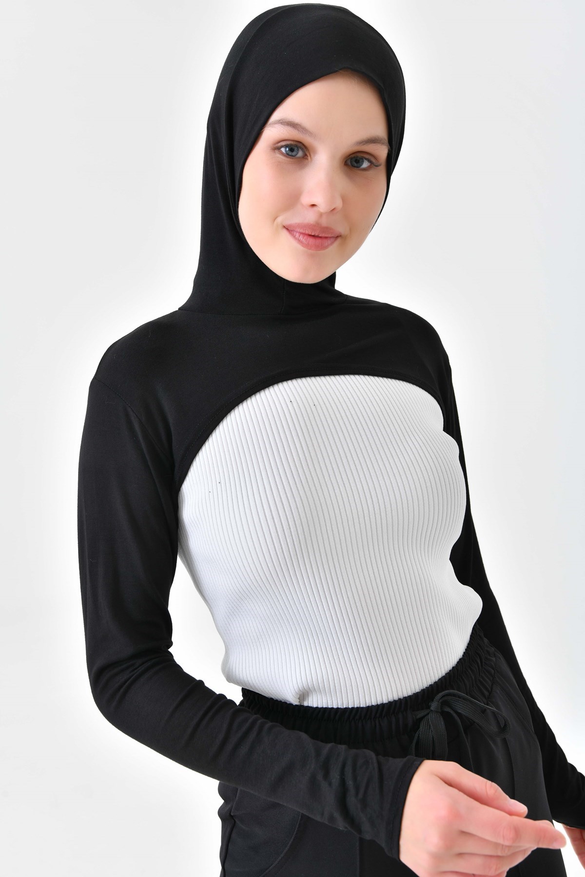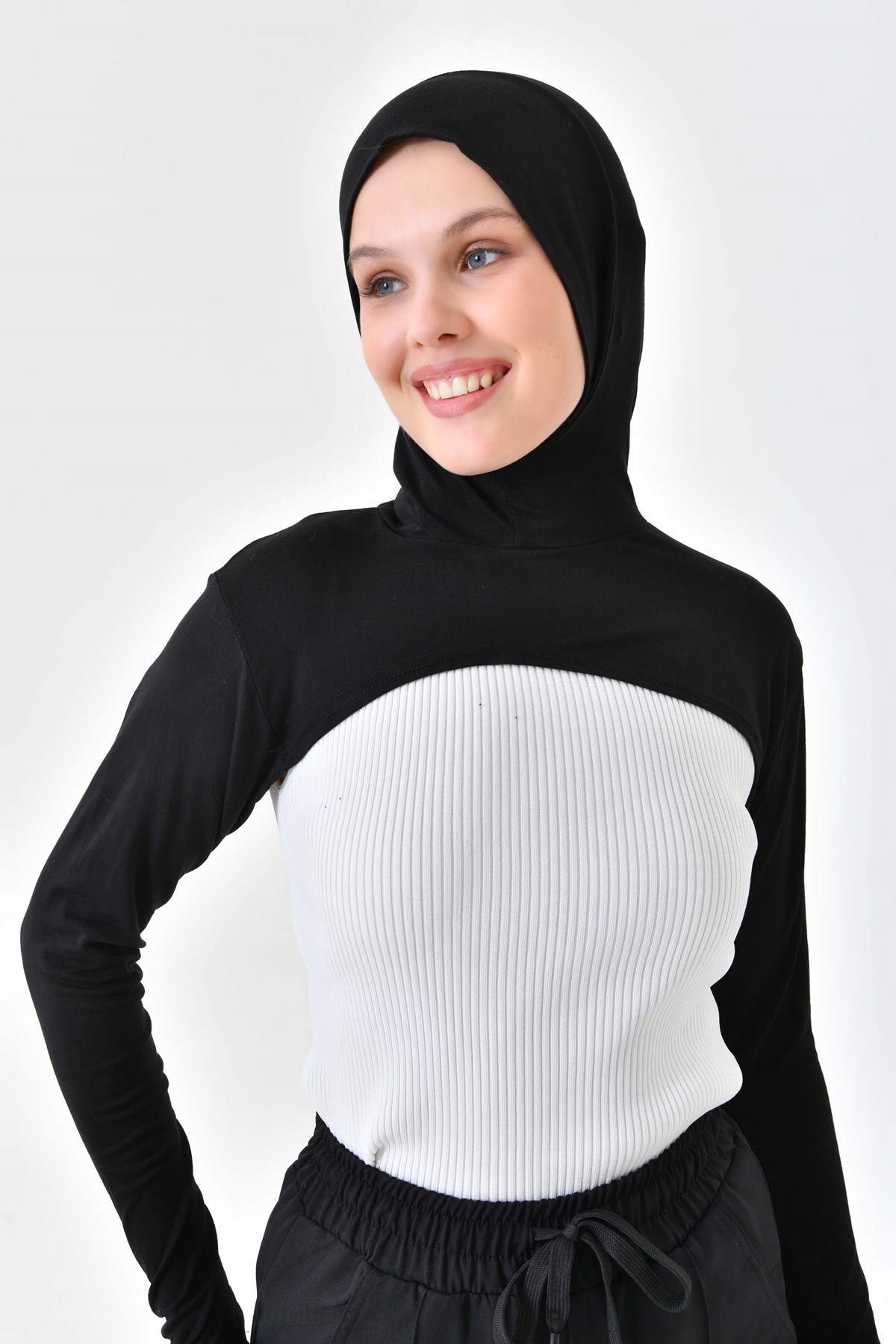 Siyah Yüksek Kaliteli Boneli Tesettür Boyunluklu Kolluk, Güneş Koruyucu Kol Örtüsü, Kapüşonlu Boyun Örtüsü, Bolero, Kapüşonlu Crop Bluz