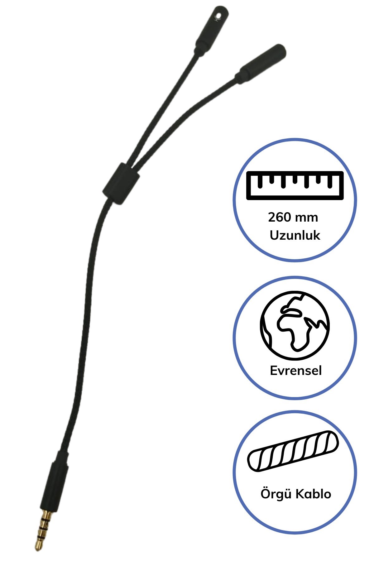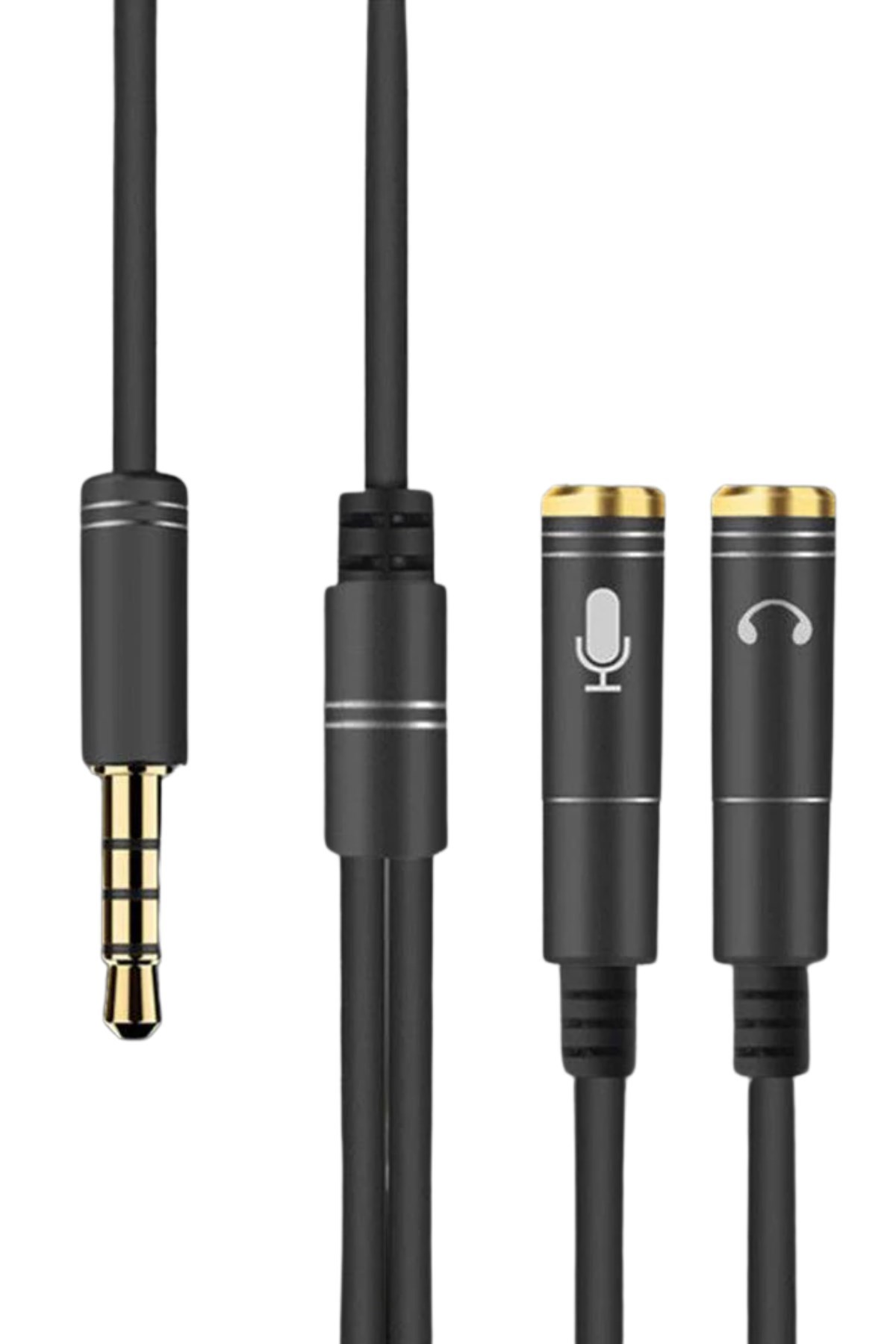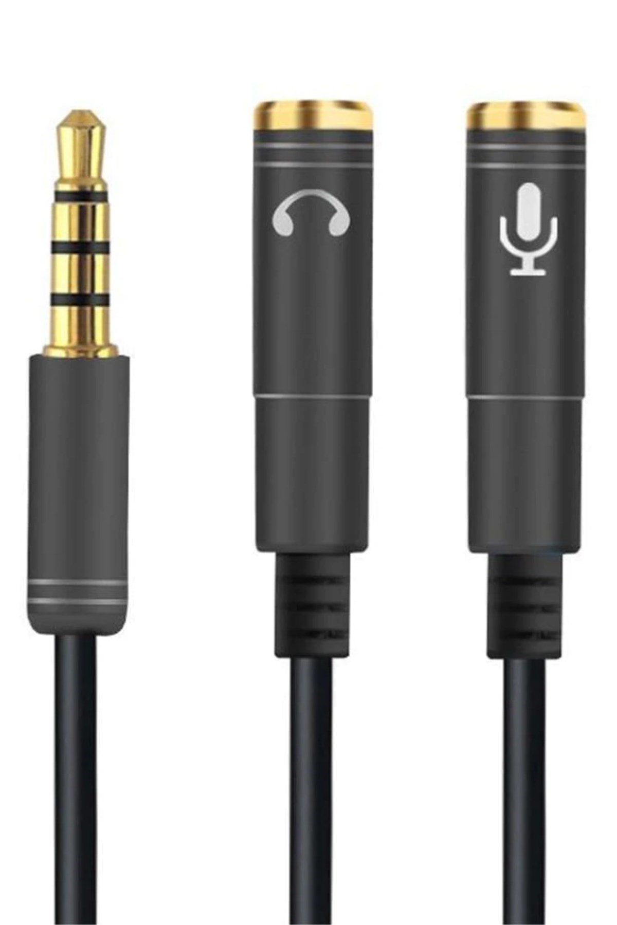 PC, laptop, cep telefonundaki tek aux ses ve mikrofon çıkışını kısa kablo ile ayırmanızı sağlar