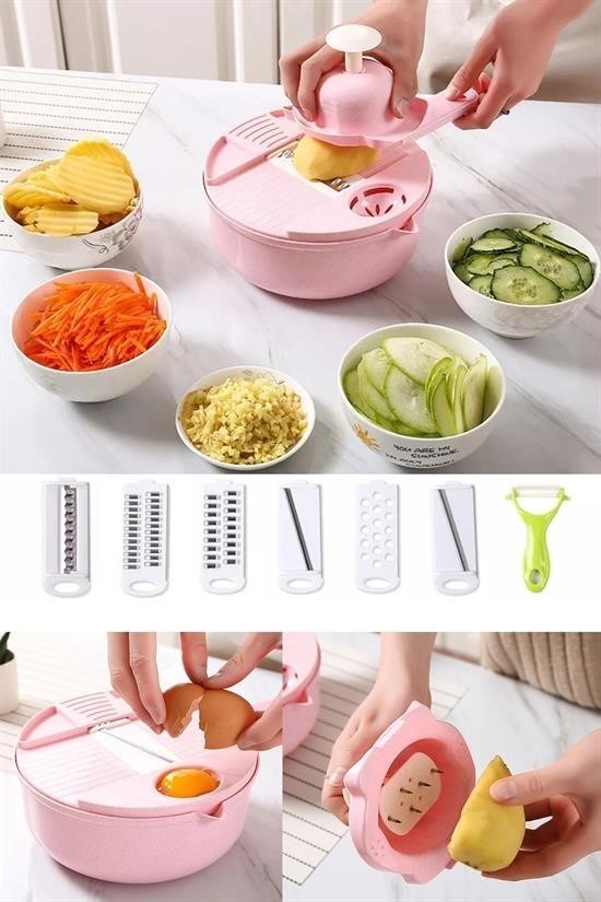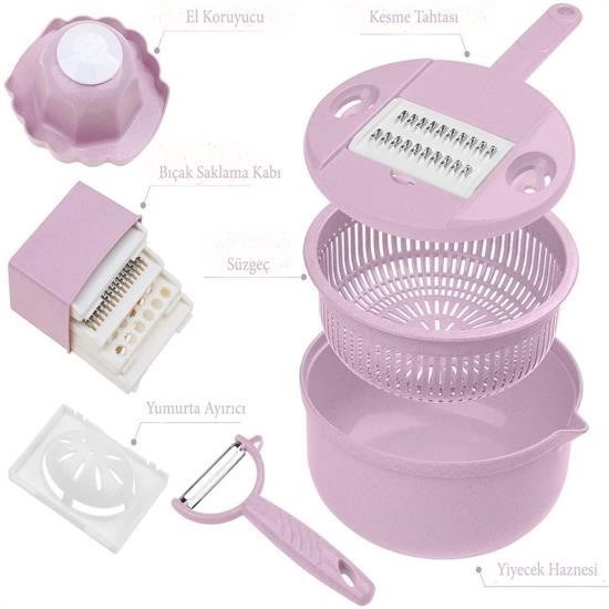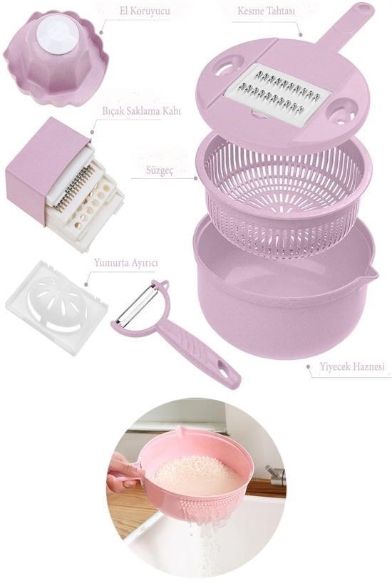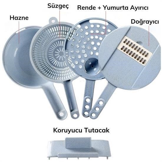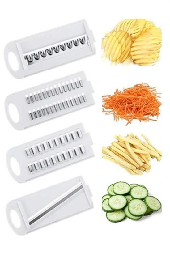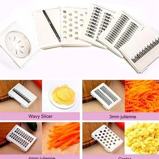 -Pratik Meyve Sebze Doğrayıcı, piyasadaki diğer ürünlerden çok daha güçlüdür Değiştirilebilir Julienne, Blades , gıda kabı, drenaj sepeti, rende ,yumurta sarısı ayırıcı ve koruyucu tutuculu çok fonksiyonlu sebze dilimleyicisine sahip olacaksınız
