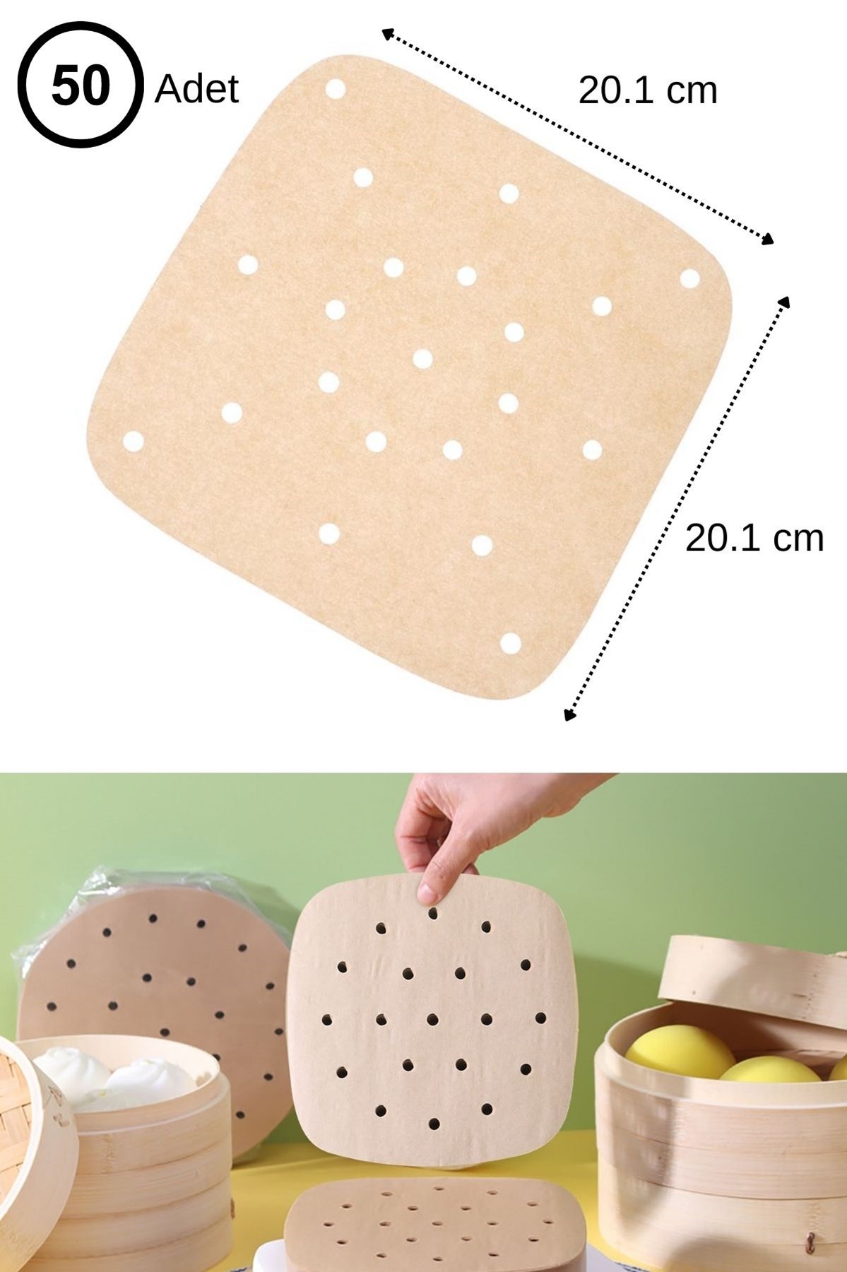 50 Adet Air Fryer Pişirme Kağıdı Tek Kullanımlık Hava Fritöz Yağ Geçirmez Yapışmaz Gıda Pişirme Kağıdı Delikli Kare Model