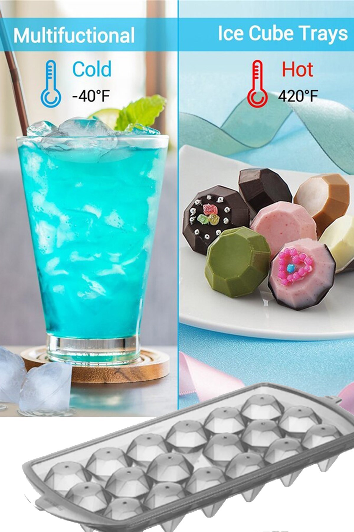 BUFFER® 18 Bölmeli Elmas Şeklinde Dekoratif Şekilli Pratik Buz Kalıbı