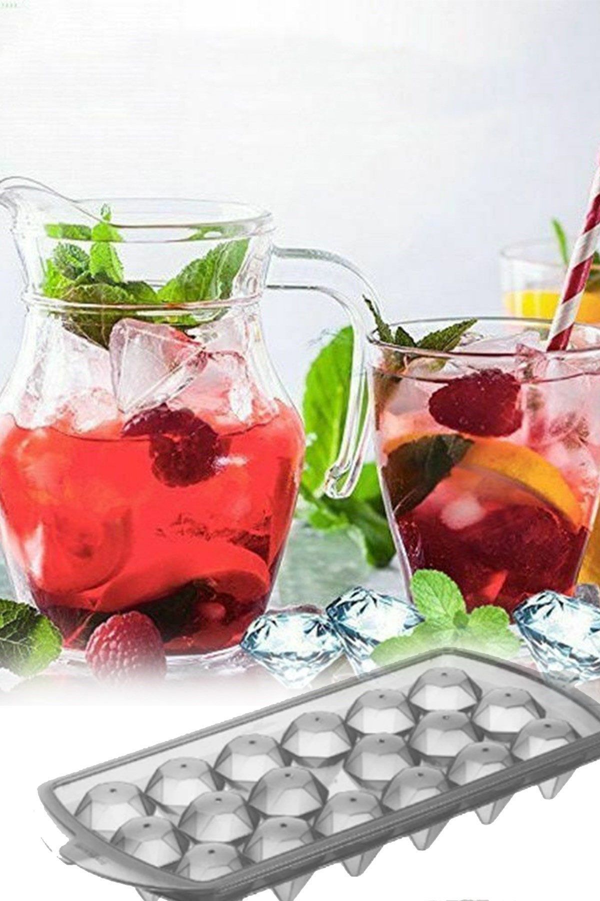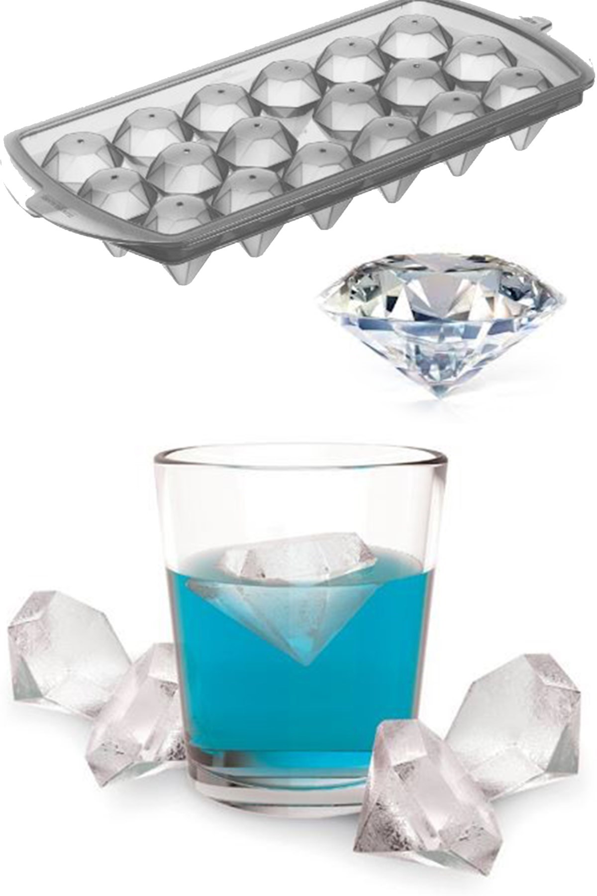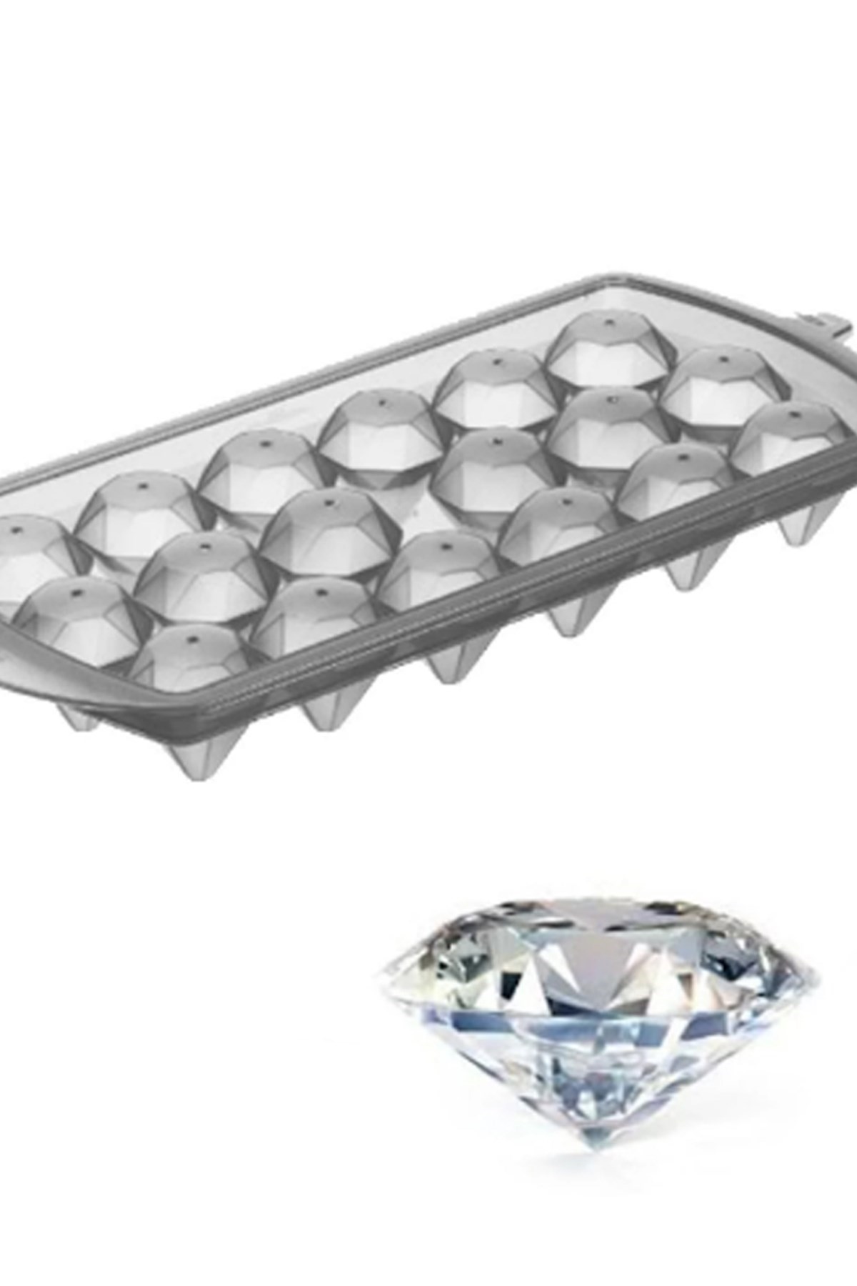 Diamond Ice Mold - Elmas Şeklinde Kapaklı Buz Kalıbı 18' li