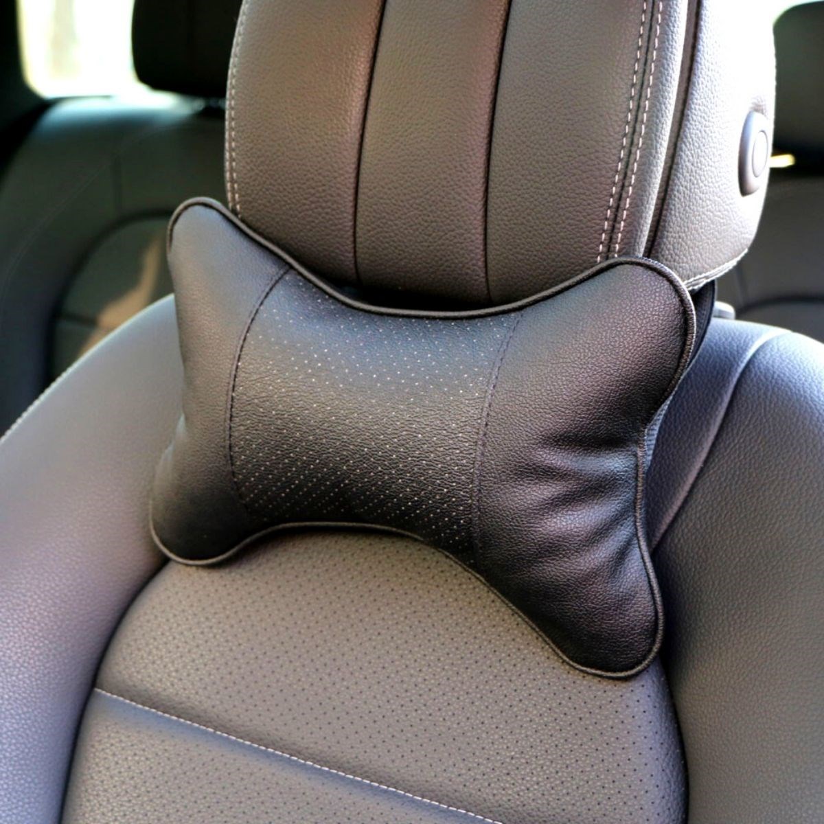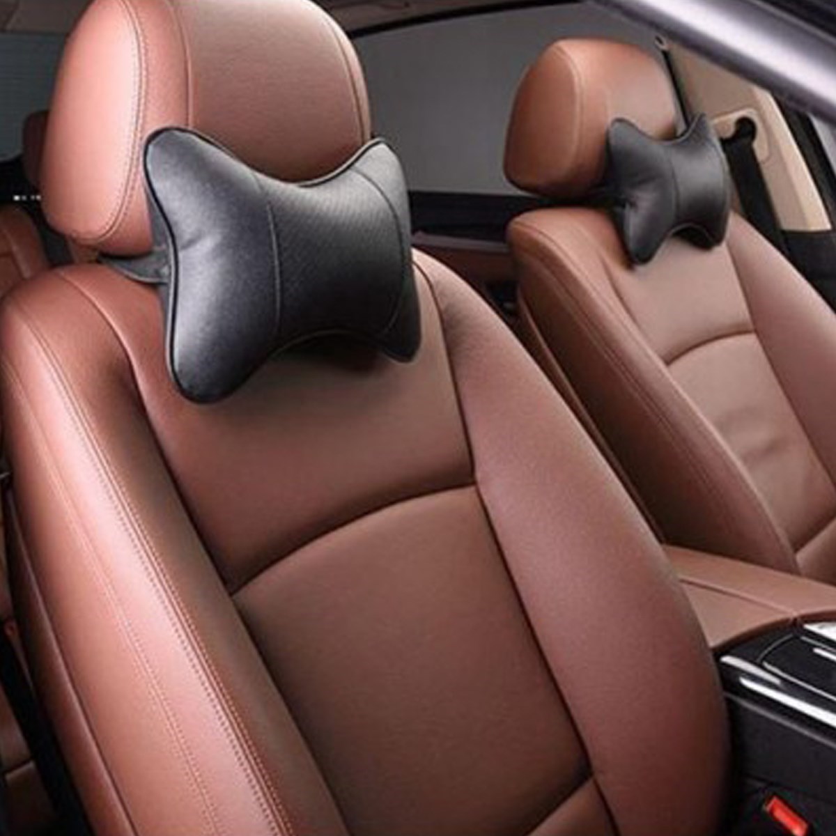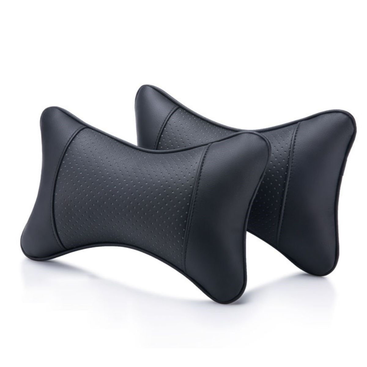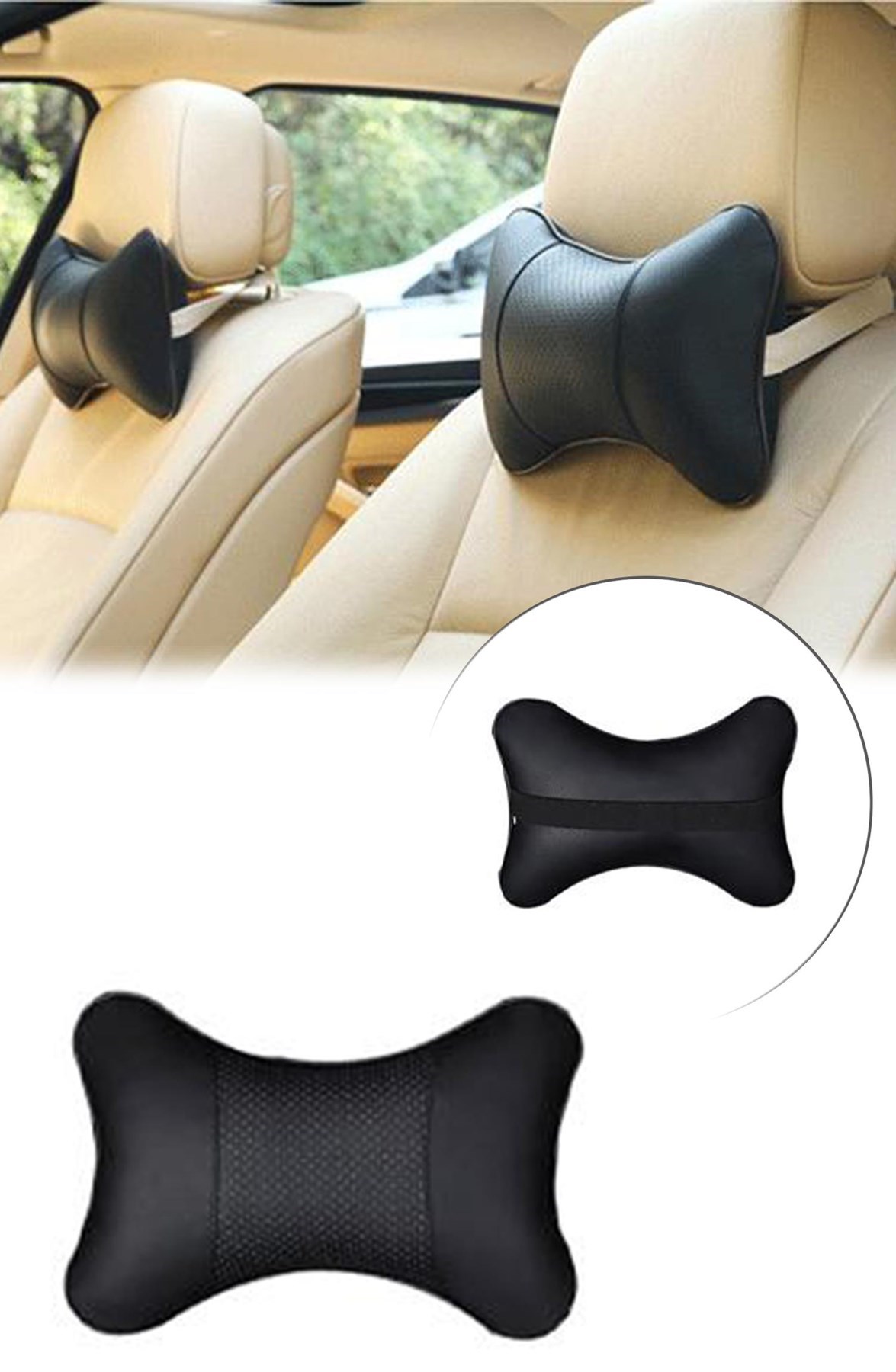 2 Adet Araç içi Ergonomik Siyah Deri Boyun ve Seyehat Yastığı