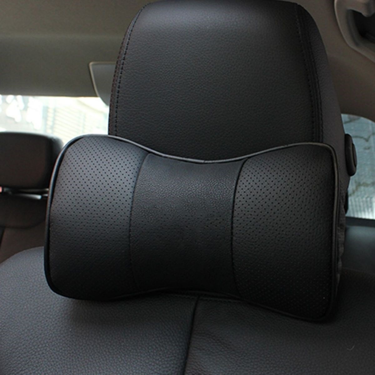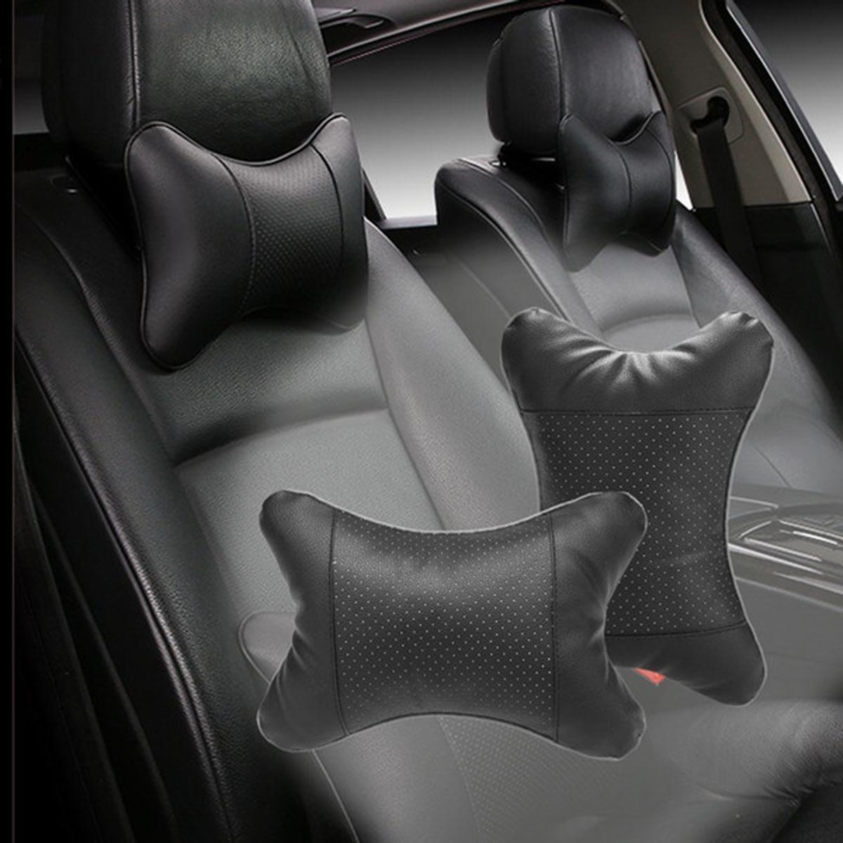 BUFFER® 2 Adet Araç içi Ergonomik Siyah Deri Boyun ve Seyehat Yastığı