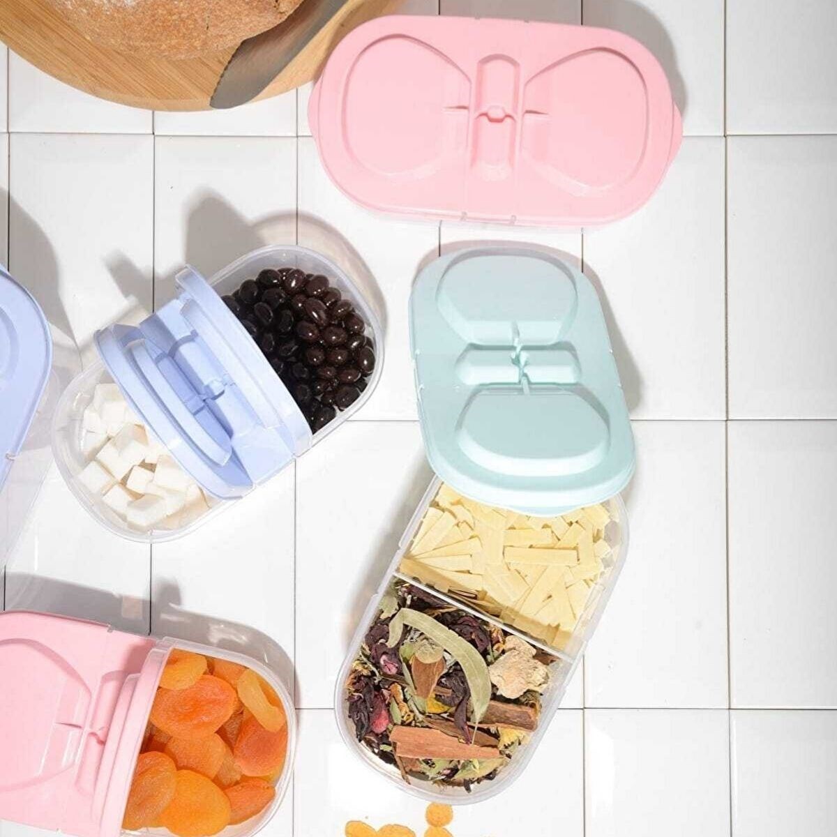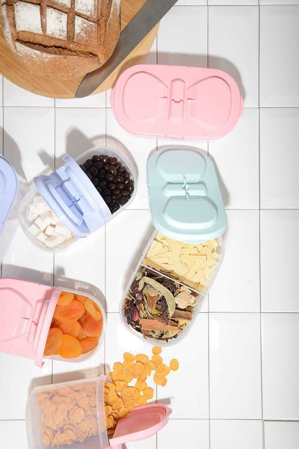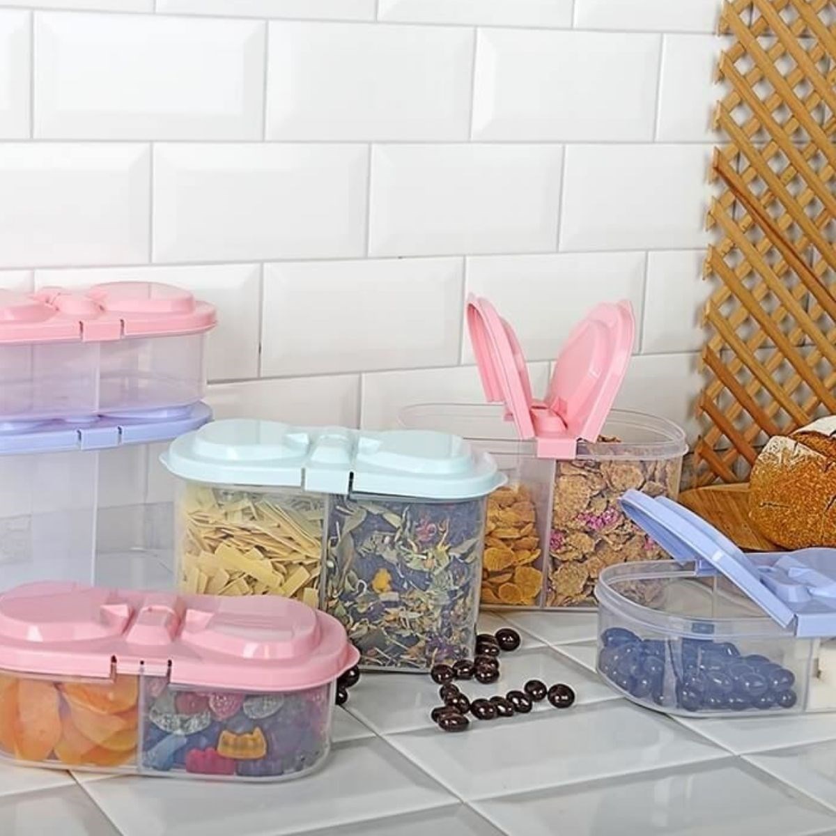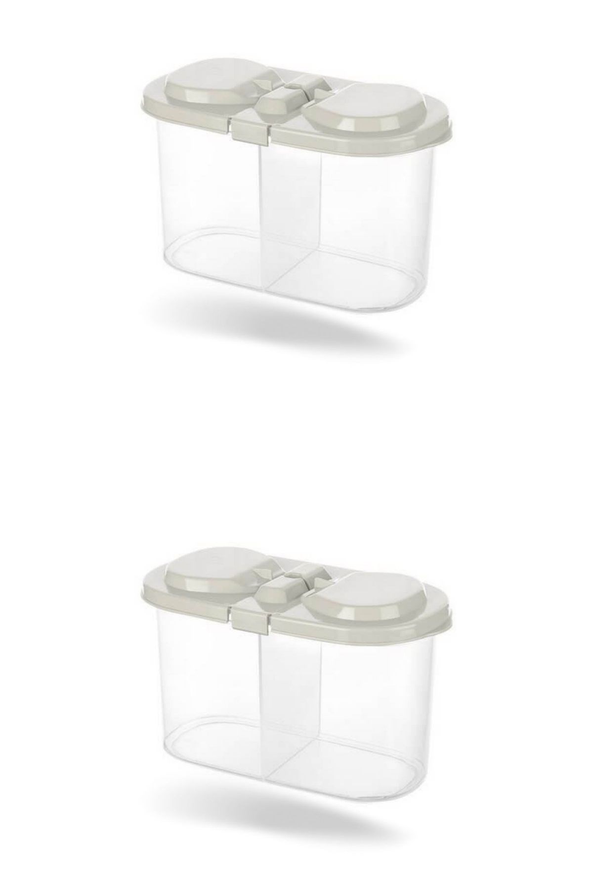 BUFFER® 2 Bölmeli Kapaklı 1200 ml Erzak Kuru Gıda Saklama Kutusu Kabı AP-9087