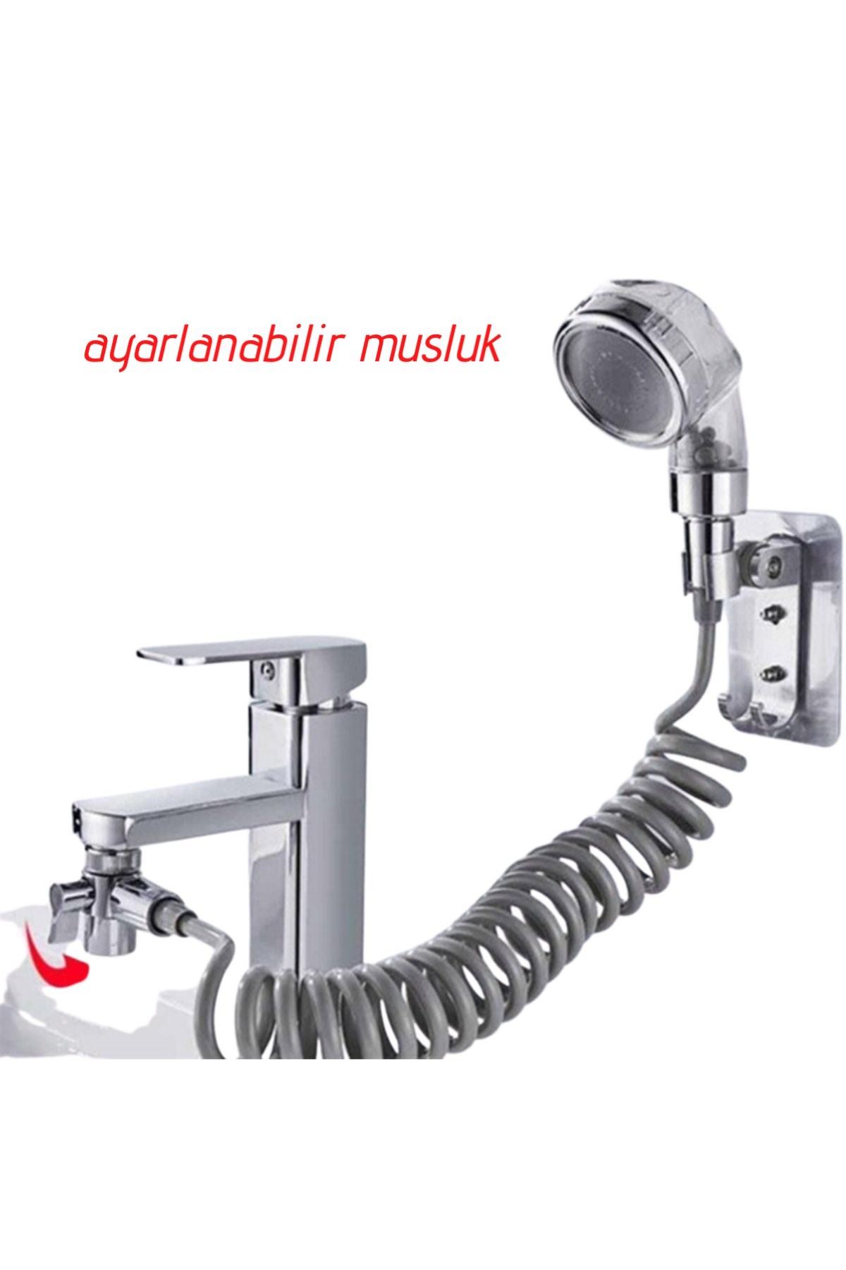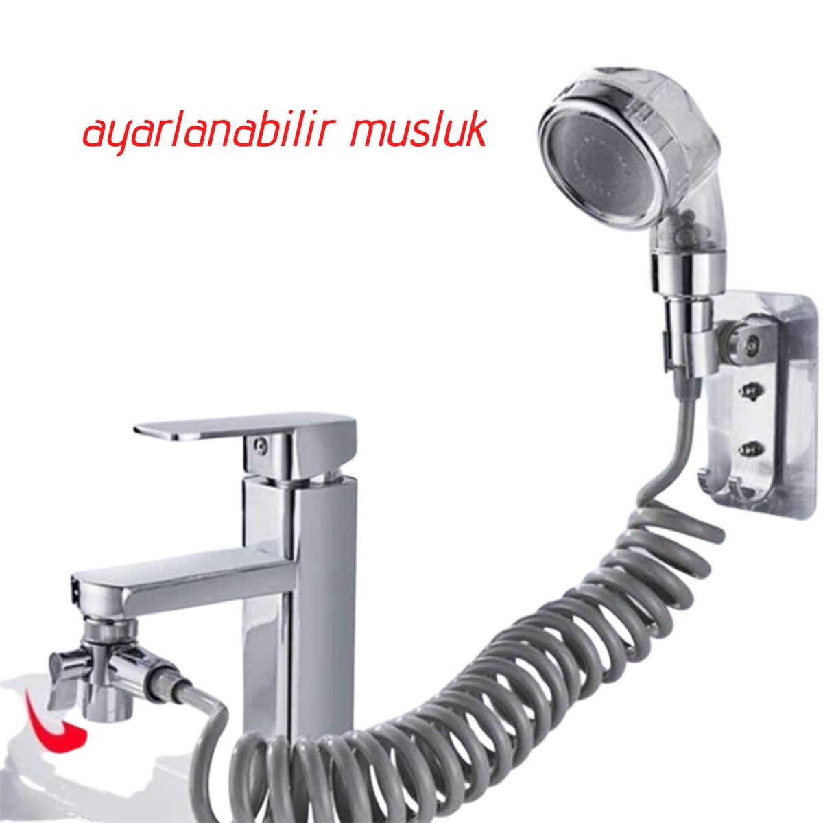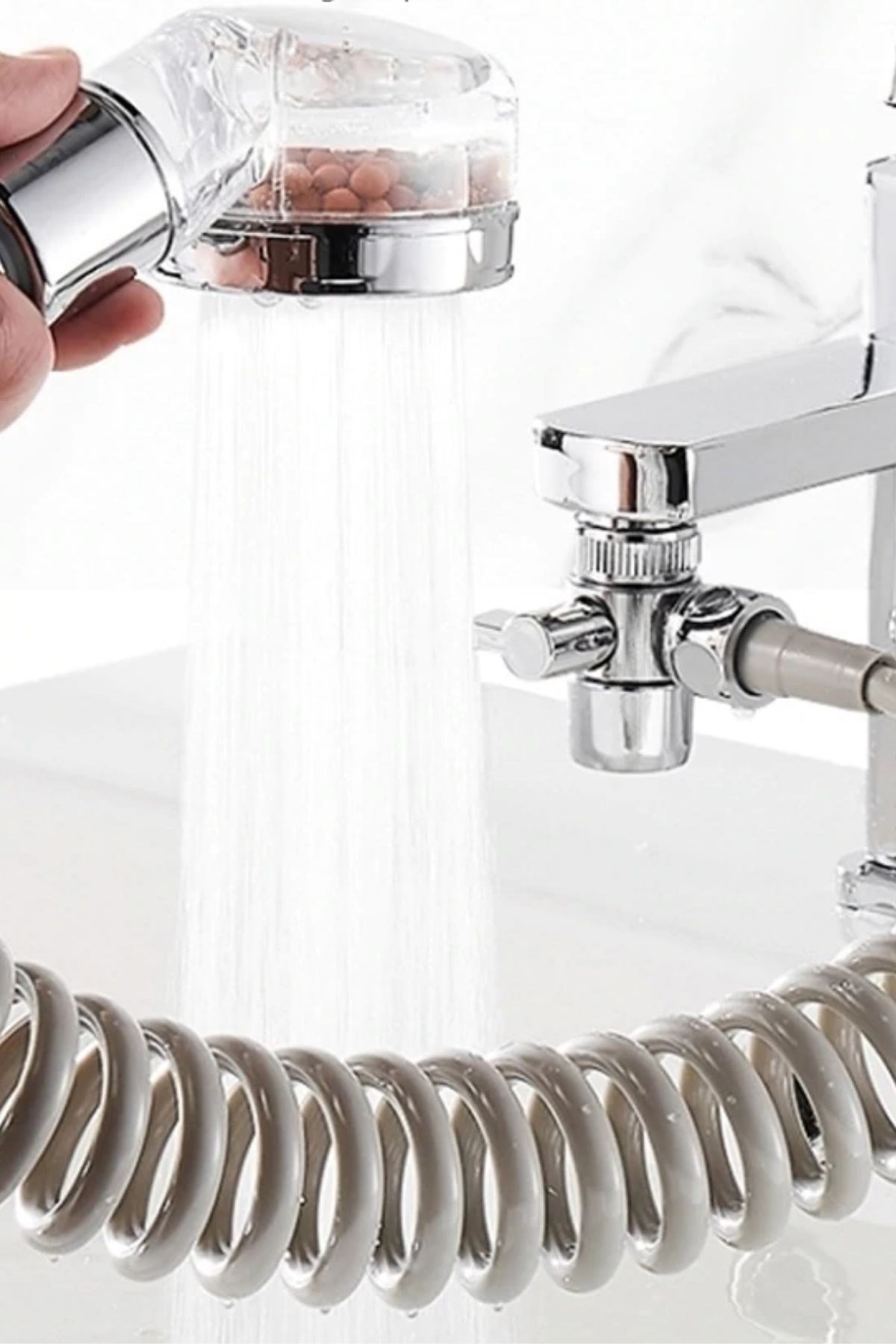 BUFFER® 2 in 1 Spiral Hortumlu Ayarlanabilir Hareketli Banyo Mutfak Lavabo Musluk Duş Başlığı