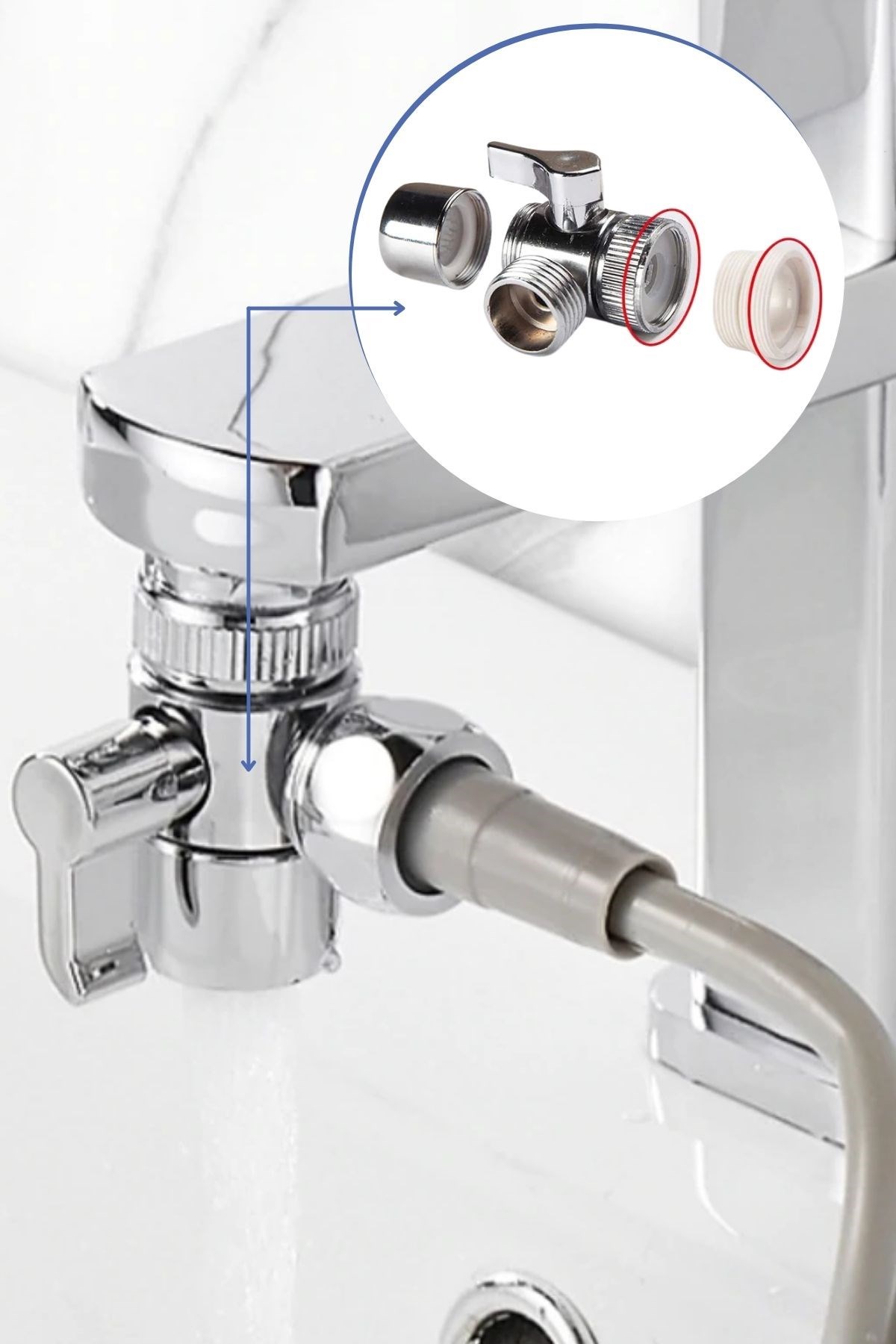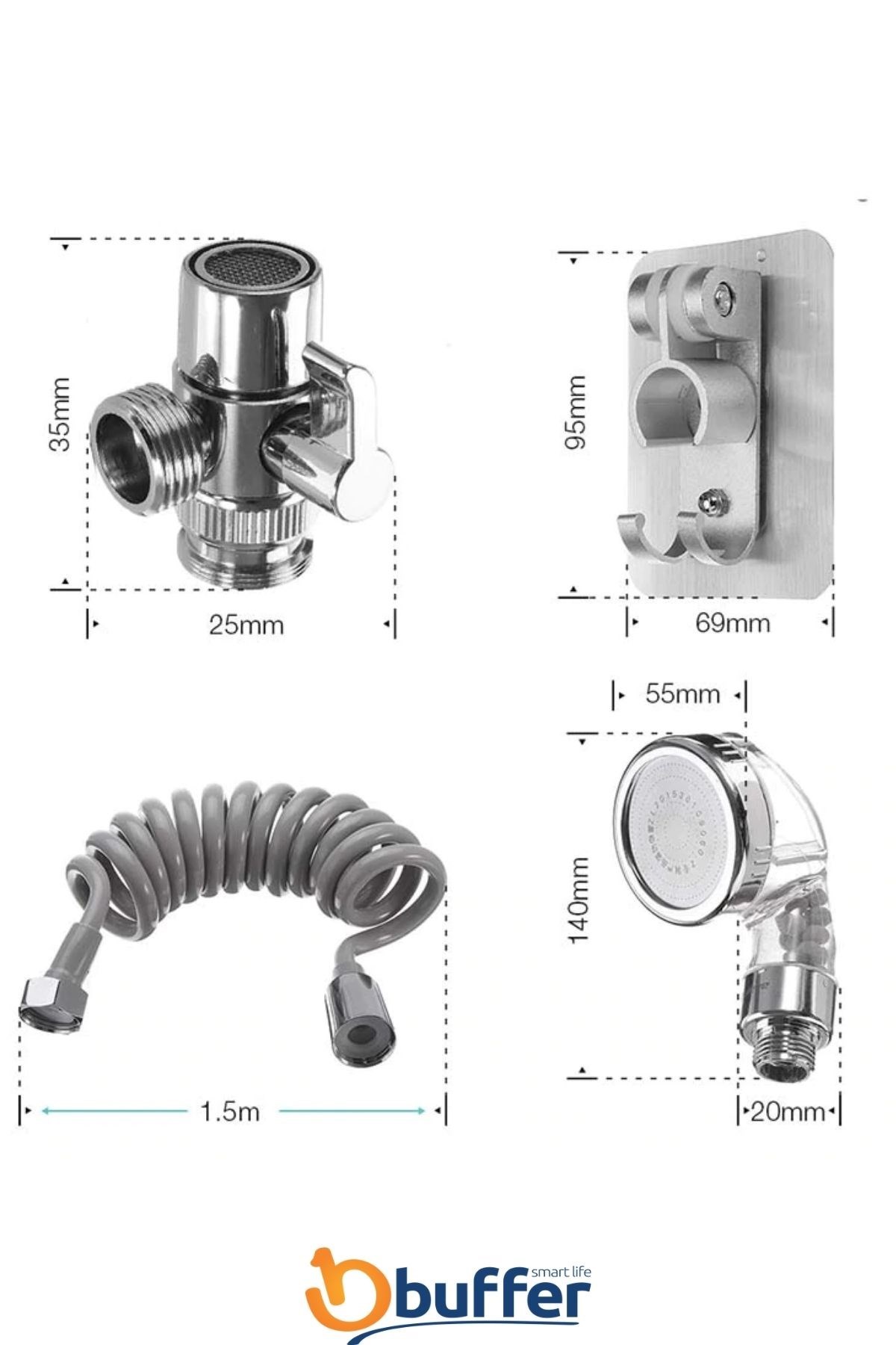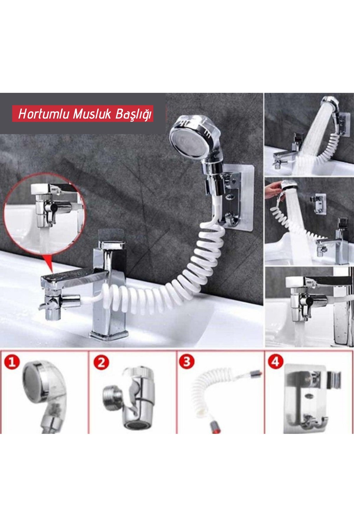 BUFFER® 2 in 1 Spiral Hortumlu Ayarlanabilir Hareketli Banyo Mutfak Lavabo Musluk Duş Başlığı