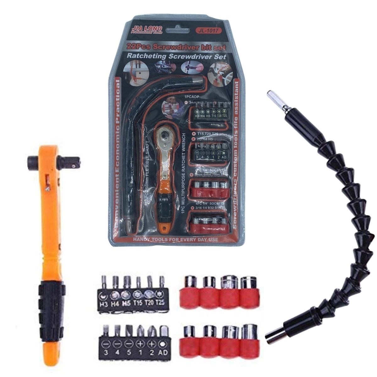 Buffer 22 Parça Tornavida Seti Esnek Kıvrılır Cırcır Kollu Lokma Ucu Seti Snake Bits Uçlu Paket Ölçüleri