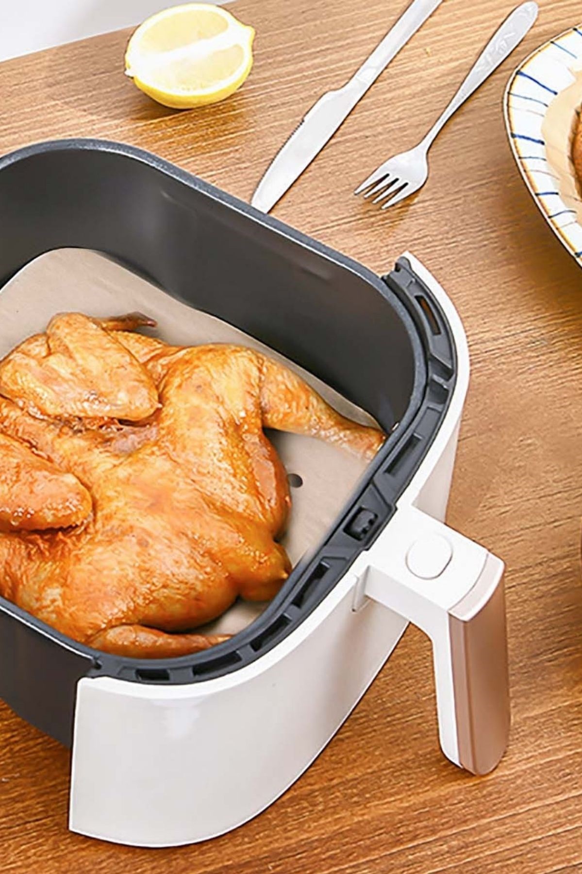 BUFFER® 250 Adet Air Fryer Pişirme Kağıdı Tek Kullanımlık Hava Fritöz Yağ Geçirmez Yapışmaz Gıda Pişirme Kağıdı Delikli Kare Model