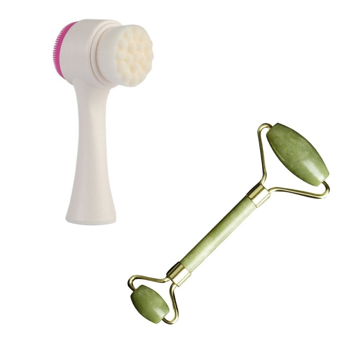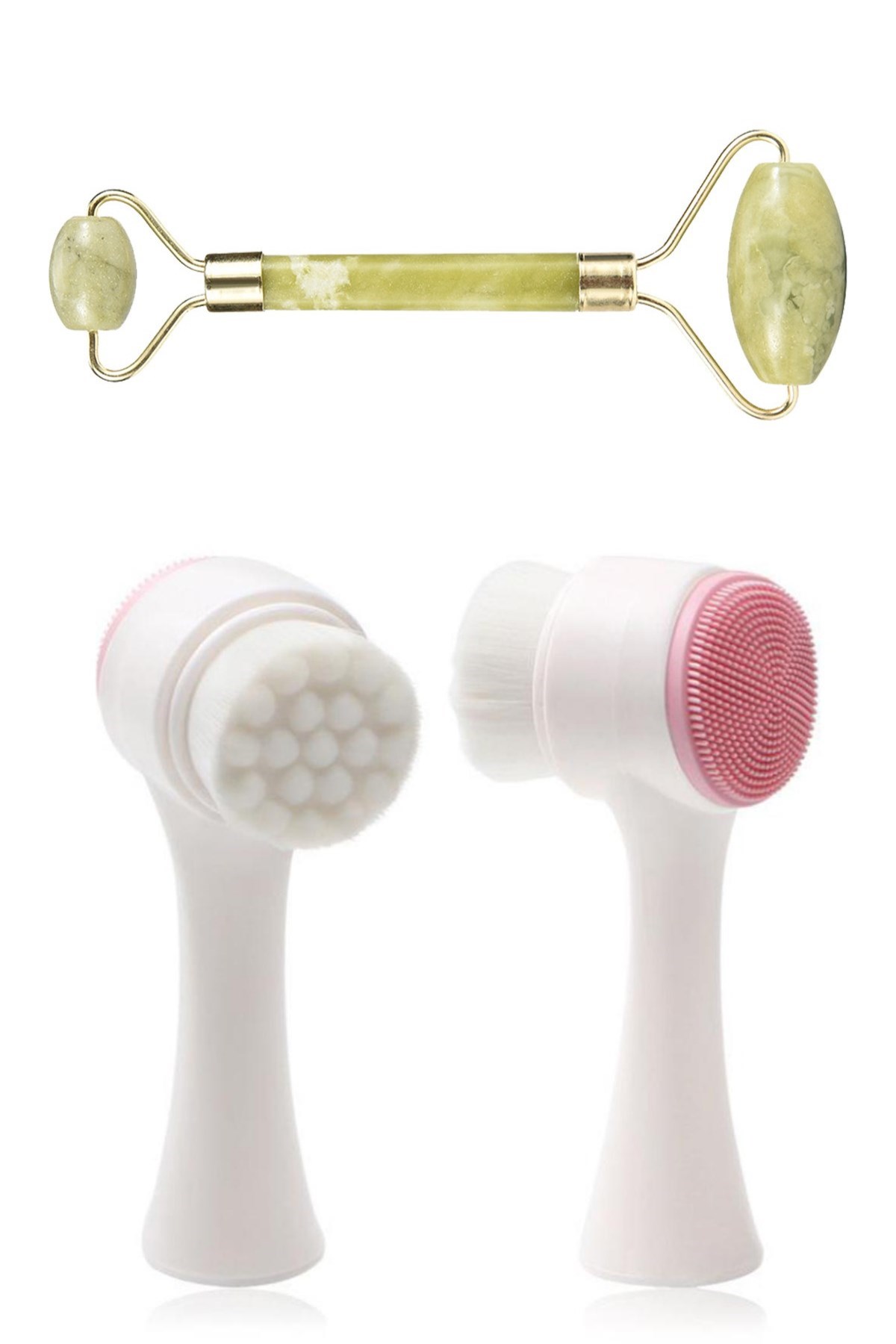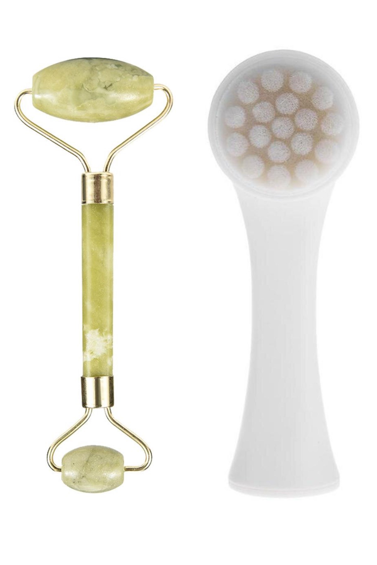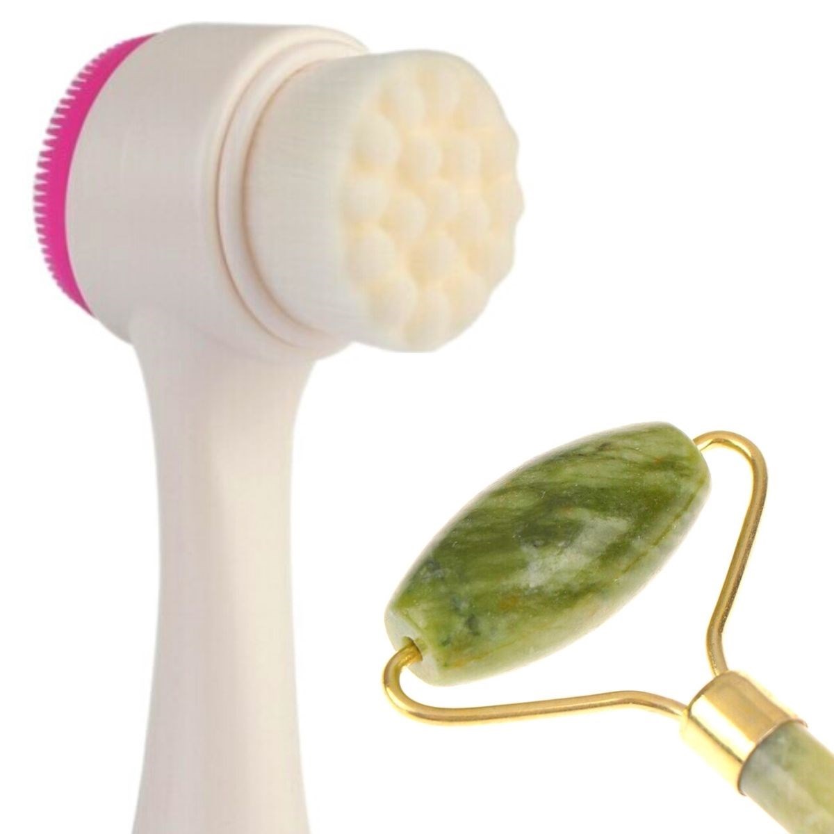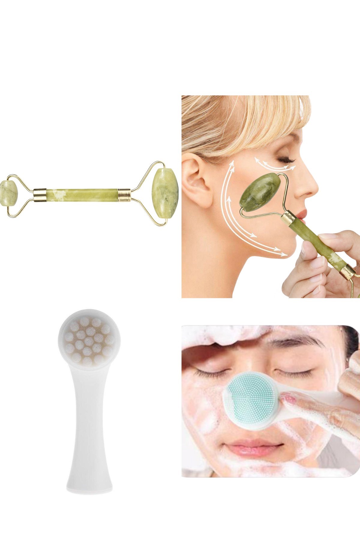 2'li Set Çift Taraflı Cilt Temizleme Fırçası ve Yeşim Taşı Çift Taraflı Cilt Masaj Aleti