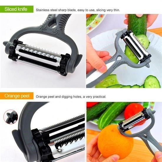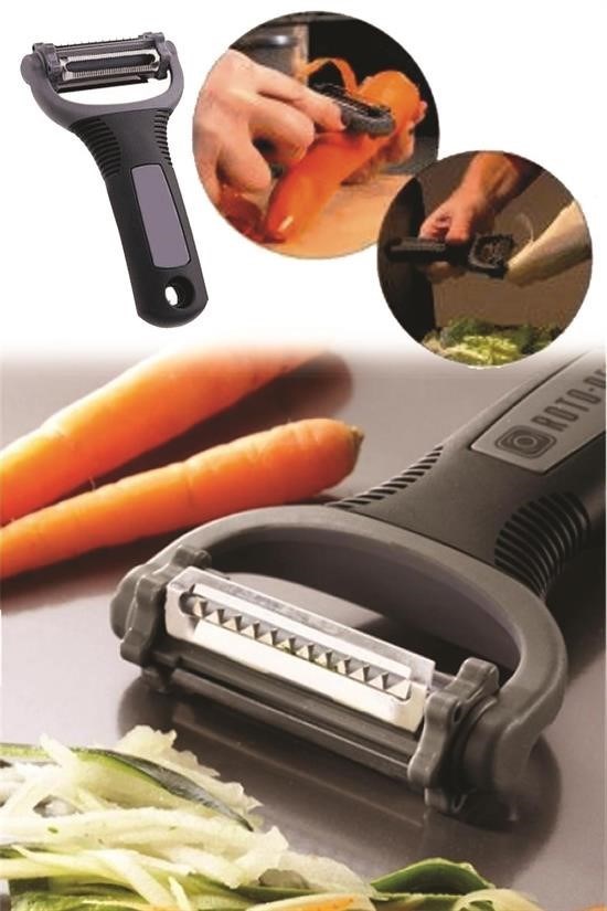 3'lü Sebze Meyve Soyucu Ve Doğrayıcının farklı başlıklarını farklı amaçlar ile kullanabilirsiniz Tek bir pratik soyacak ile birden fazla fonksiyona sahip olabilirsiniz