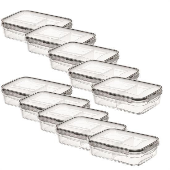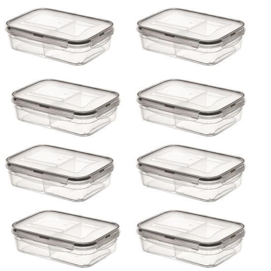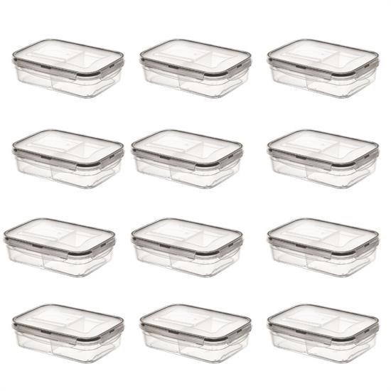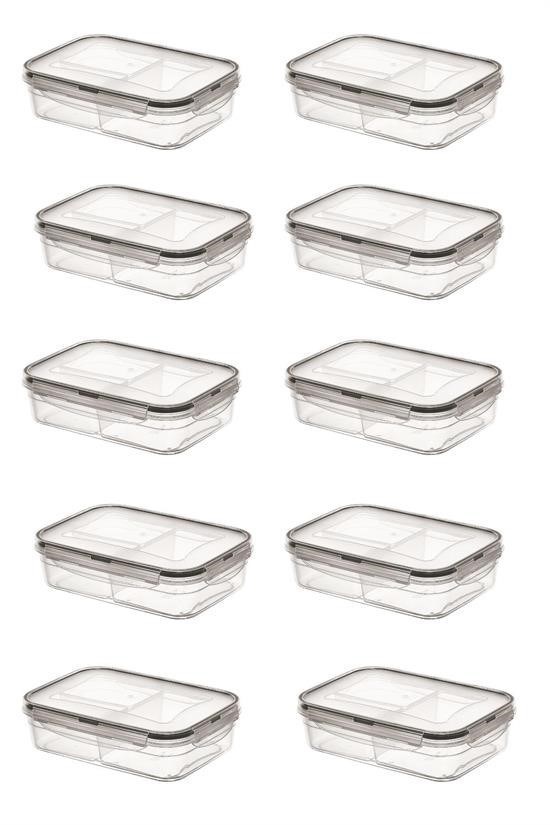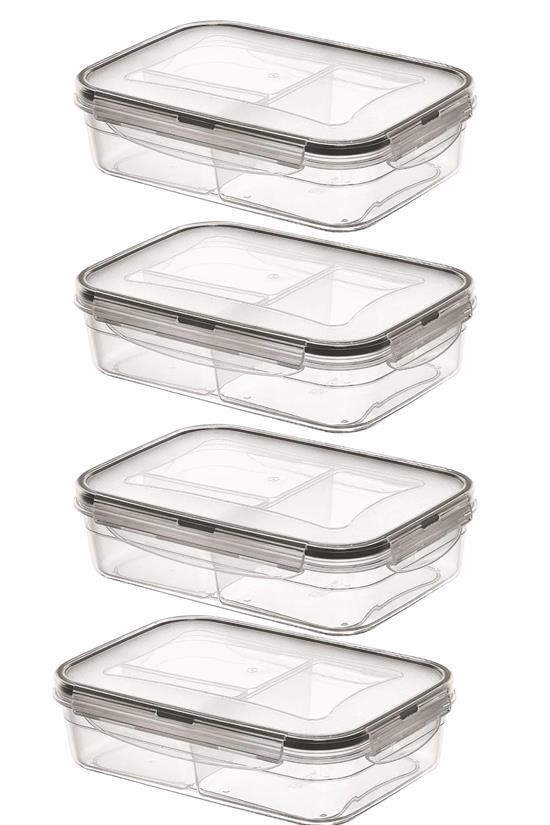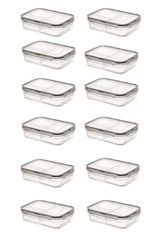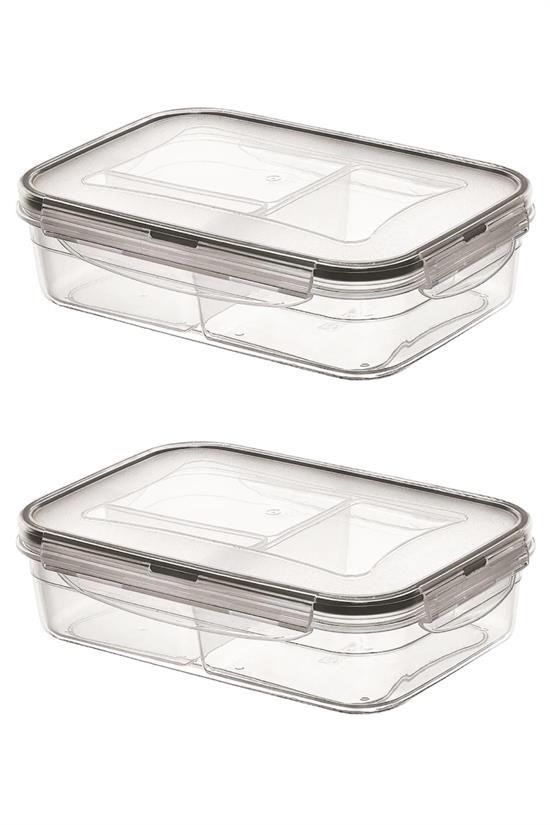 BUFFER® 3 Bölmeli Kilitli Kapaklı 1 Litre Erzak Saklama Kabı Diyet Saklama Kabı Taşınabilir Beslenme Kabı