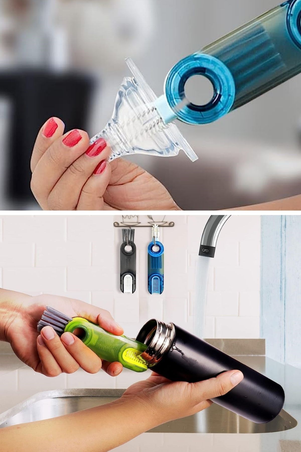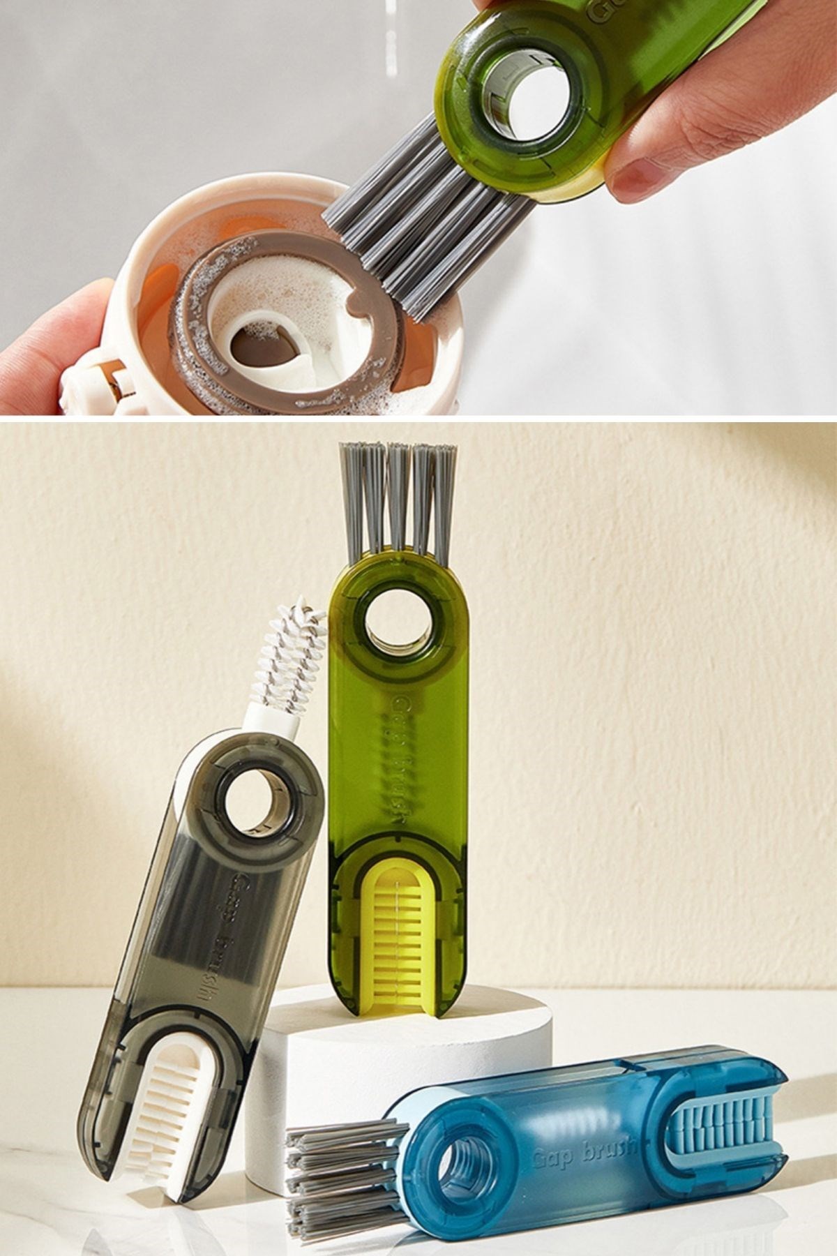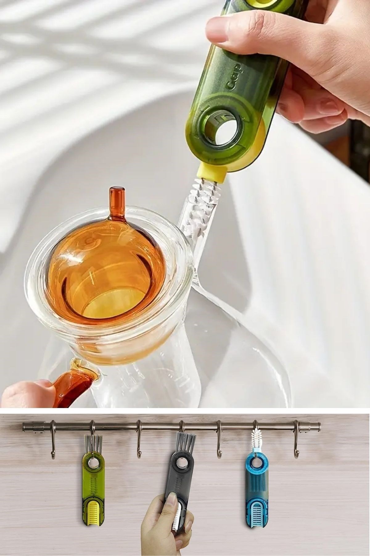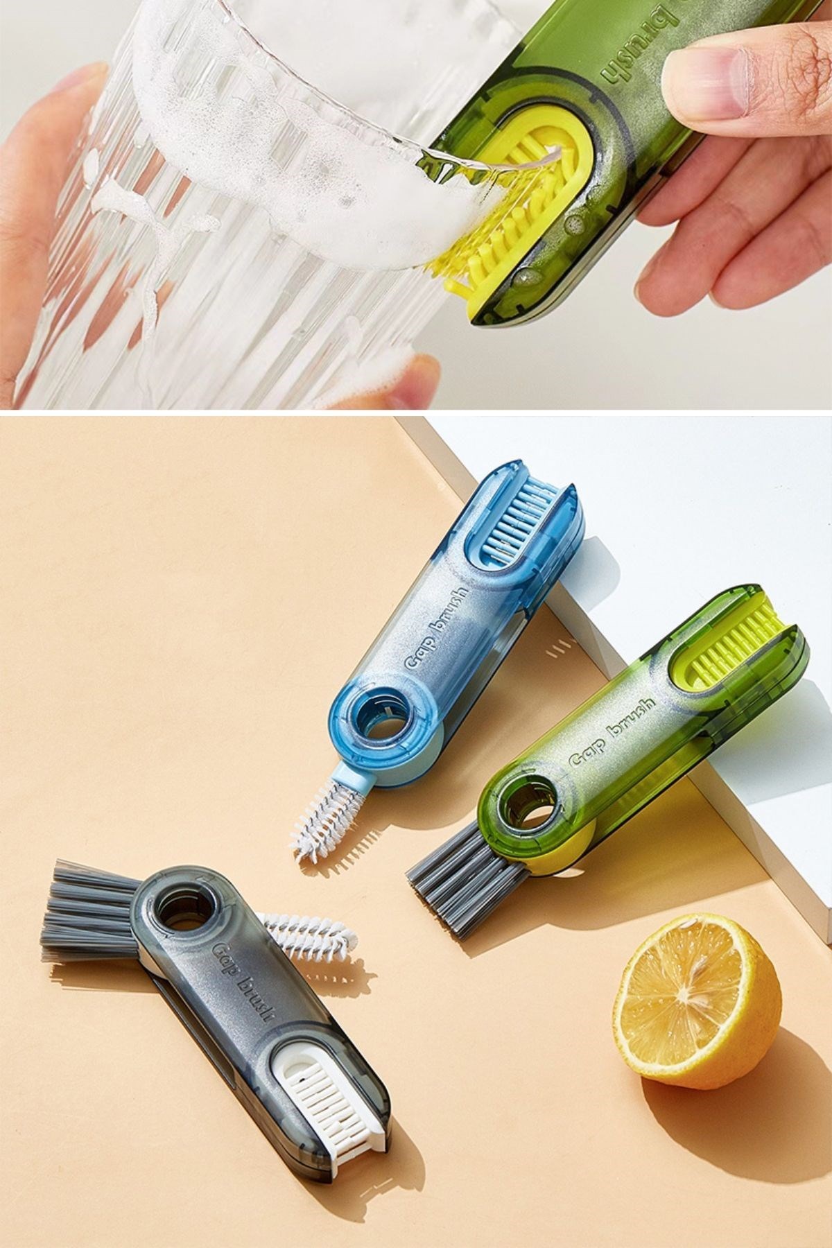 BUFFER® 3 Fonksiyonlu Pratik Şişe Temizleme Fırçası Mutfak Banyo Araç Klavye Pencere Oluklar İçin Çok Amaçlı Fırça