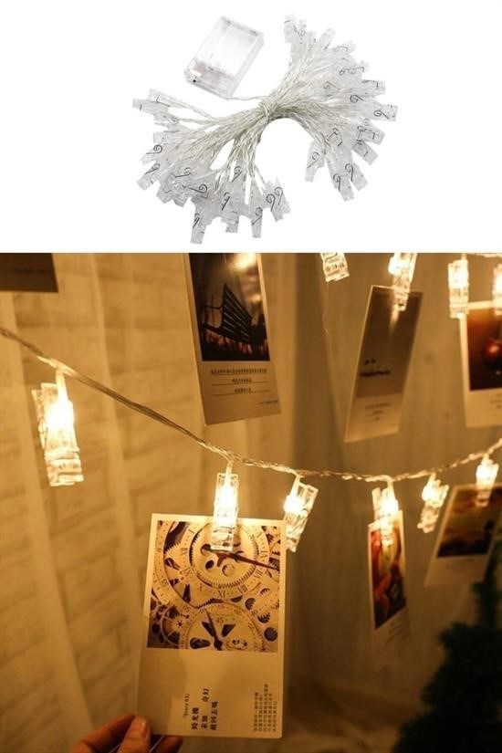 Süper parlak ve düşük enerji tüketimli Işıklı Fotoğraf Mandalları sevdiklerinize yapabileceğiniz sürprizler arasında yer almalıdır Salonunuzda ya da odanızda çok etkileyici bir dekor olacaktır Dekoratif fotoğraf askısı, 3 metreden oluşan kablosu sayesinde üzerinde 20 adet mandalıyla asabileceğiniz ışıklı bir aksesuardır
