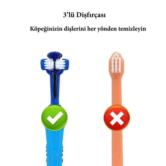 3 Kafalı diş fırçası evcil kedi ya da evcil köpeğinizin dişlerindeki plak ve tartarları daha dikkatli bir şekilde temizlemek ve dişlerini korumak için özel olarak tasarlanmıştır