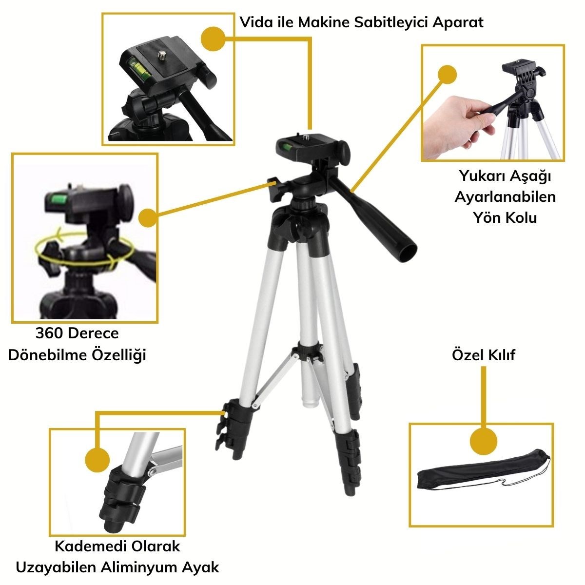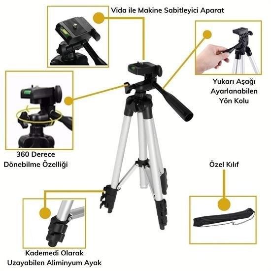 Tripod bacakları kilitlenebilir ve dilediğiniz boyda sabit kalabilir