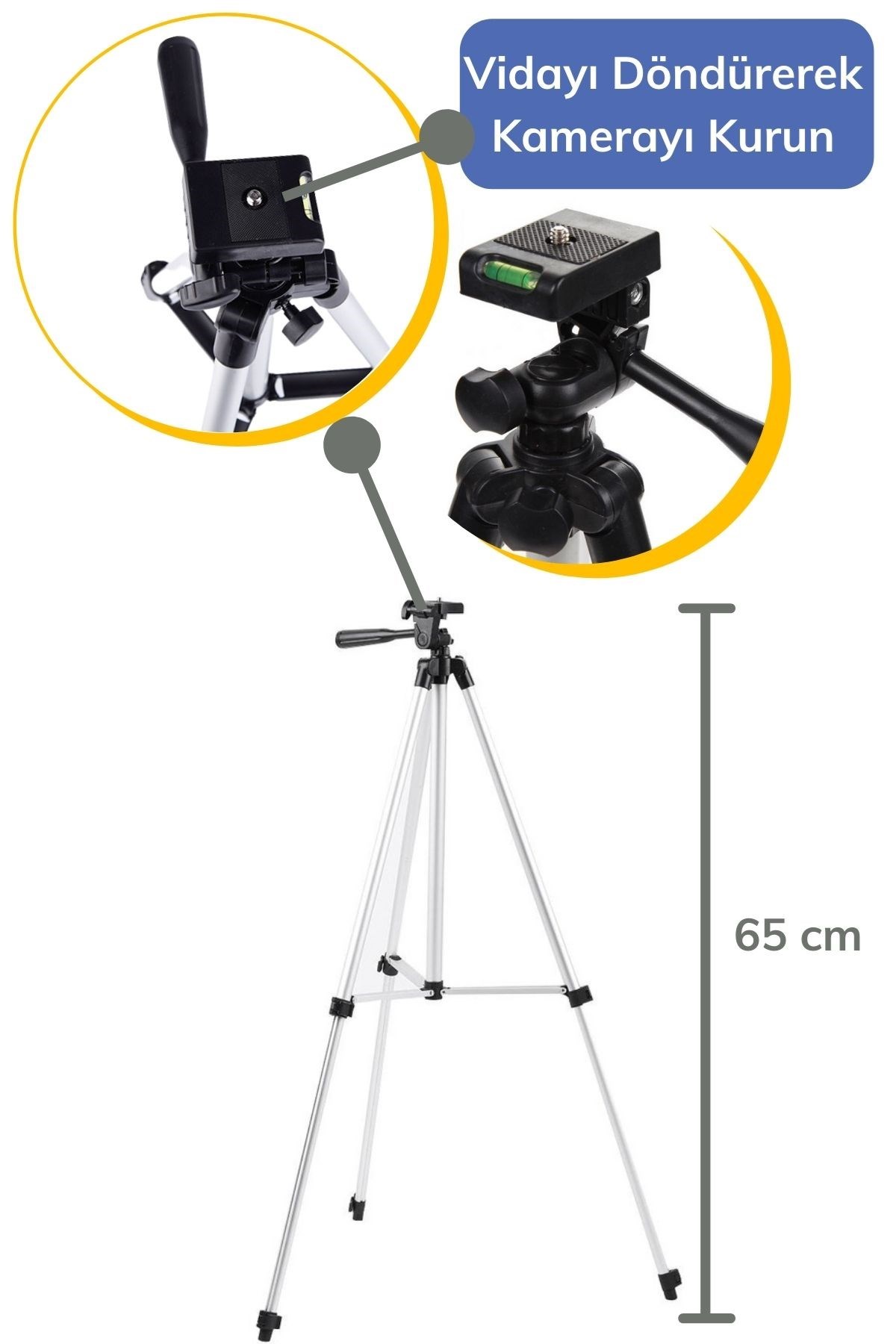Tripod ayakları 65 cm kadar uzar