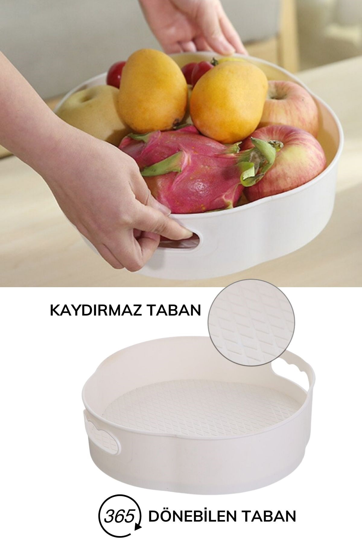 Buffer 360 Derece Dönebilen Mekanizmalı Yuvarlak Tepsi Formlu Sunum ve Servis Organizer Tablası