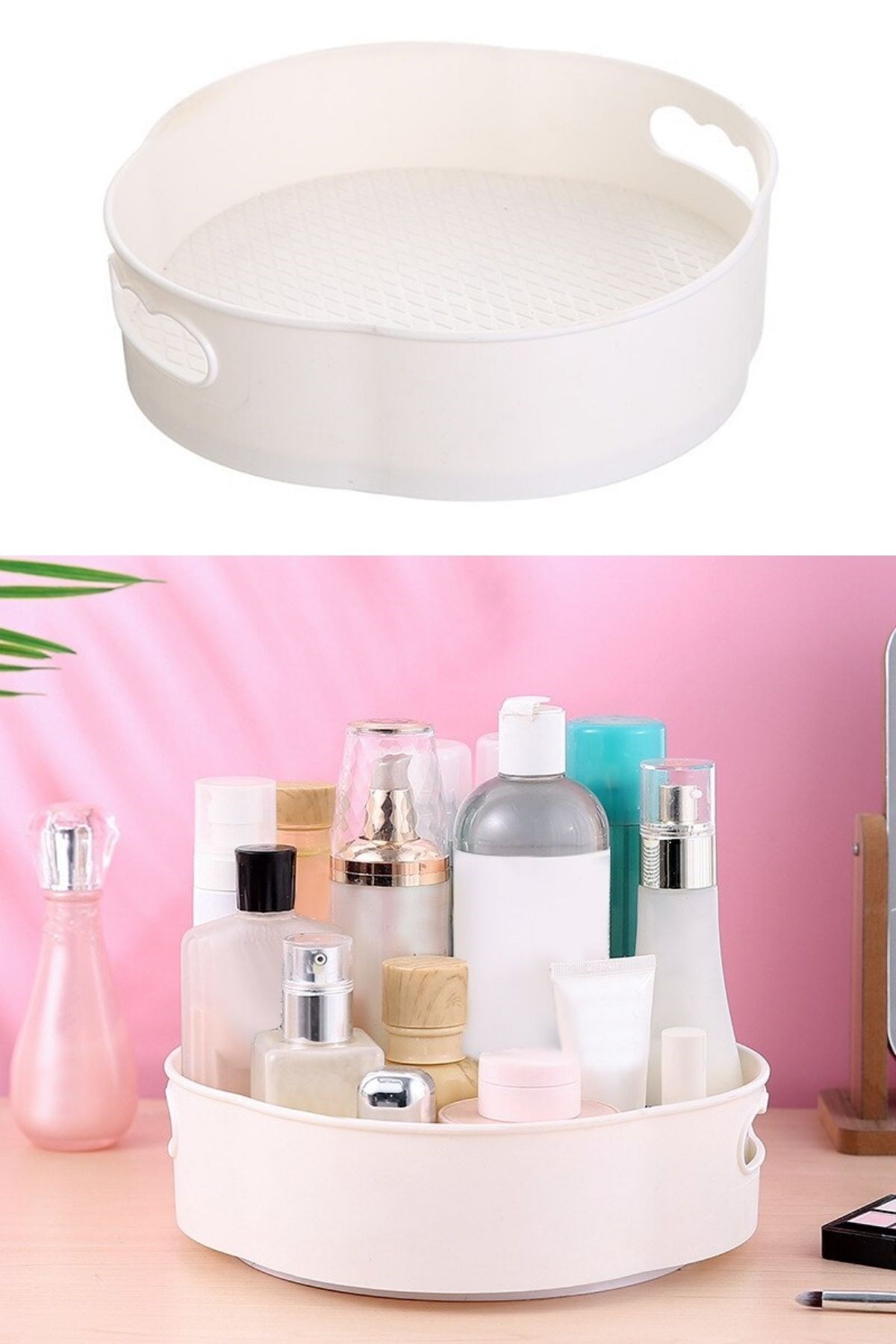 Kullanım alanlarının çokluğu ve kullanım kolaylığı ile 360 Derece Dönebilen Mekanizmalı Yuvarlak Tepsi Formlu Sunum ve Servis Organizer Tablası başta mutfak, banyo ve sofralar olmak üzere birden fazla alanda kullanılabilir