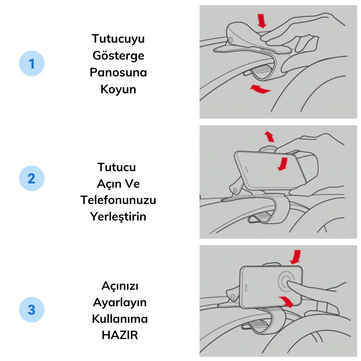 Araba telefon tutucusu ile artık seyir halindeyken telefonunuzu nereye koyacağınızı düşünmenize ya da haritaya bakarken telefonunuzu elinizde tutmanıza gerek kalmayacak Araç içi telefon tutucuyu araba konsolunuza yerleştirip telefonunuzu sabitleyerek hem daha keyifli bir sürüş keyfi yaşayabilir hem de en büyük yardımcınızı daima göz önünde tutabilirsiniz