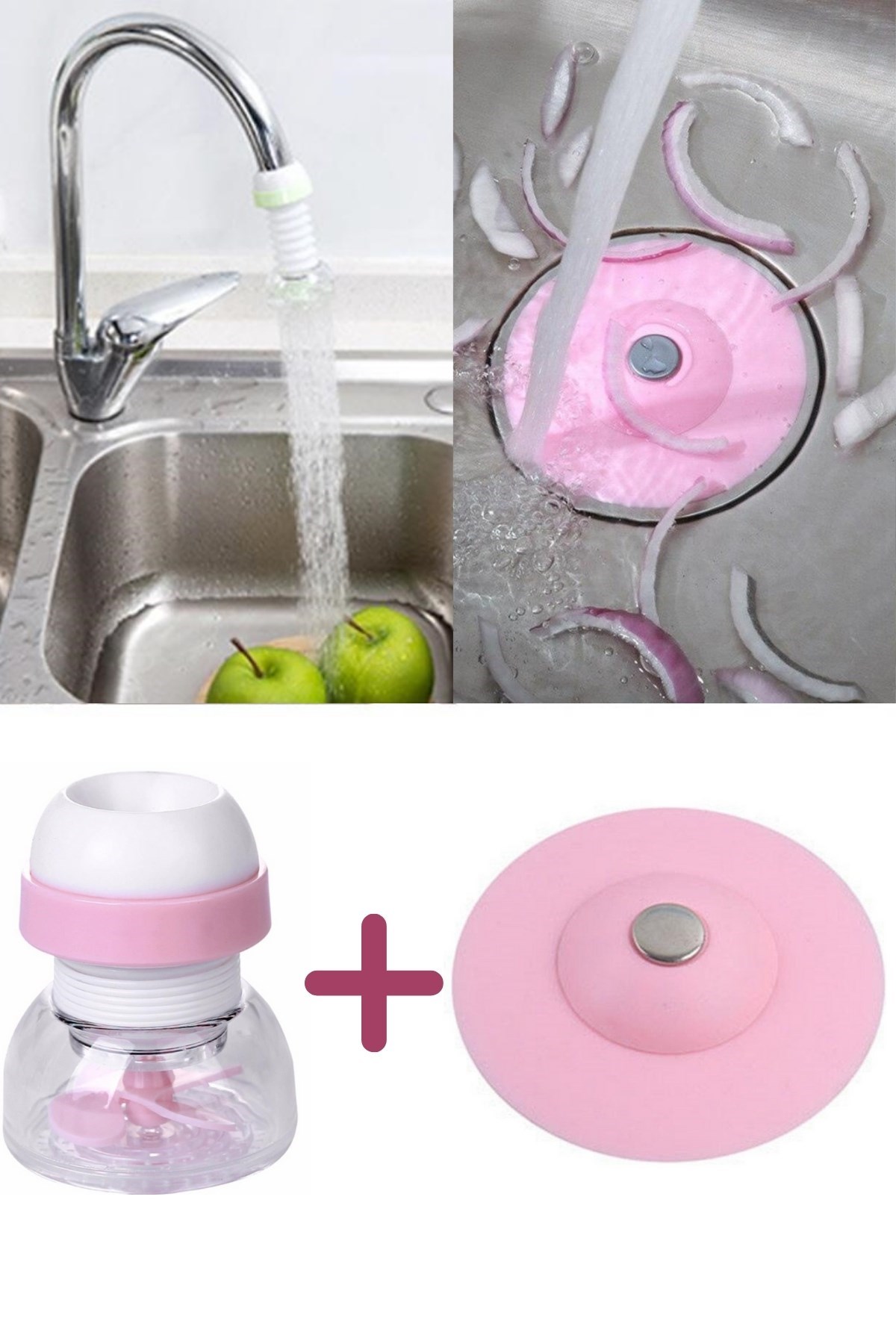 BUFFER® 360 Derece Dönen Damlama Su TasarrufluMusluk Başlığıseti Silikon Mutfak Lavabo Tıkacı Set