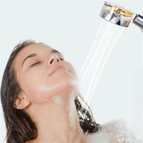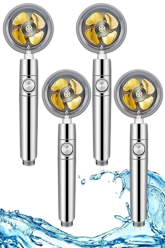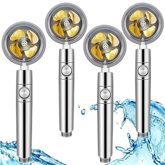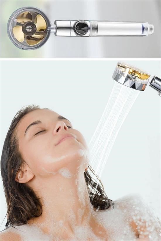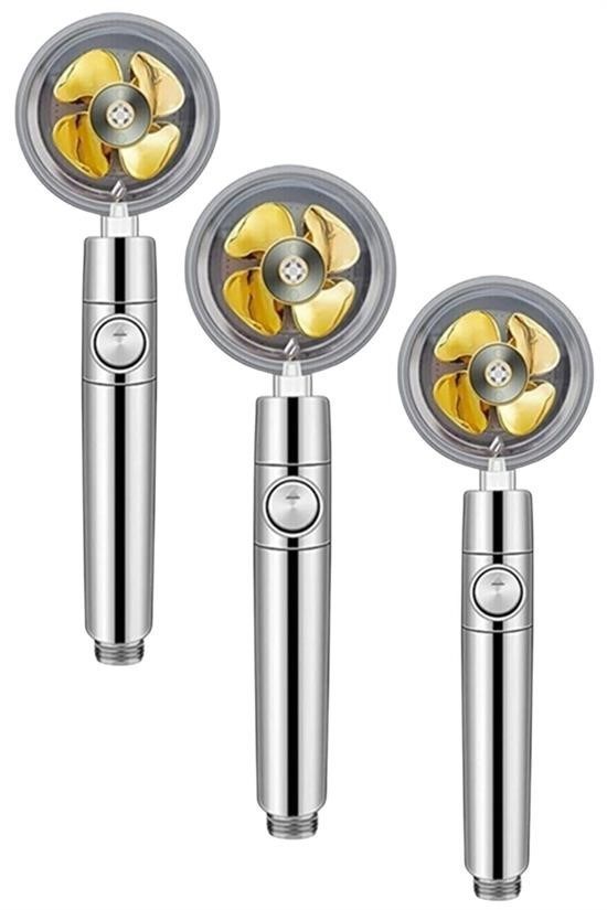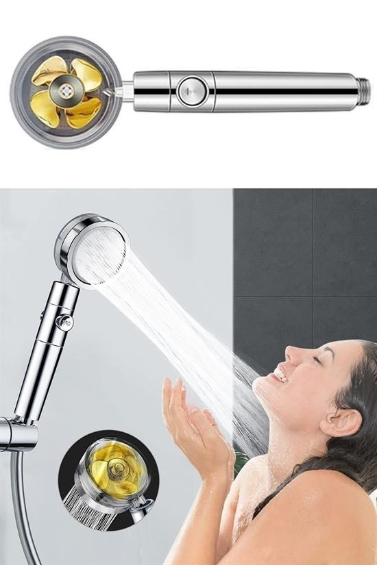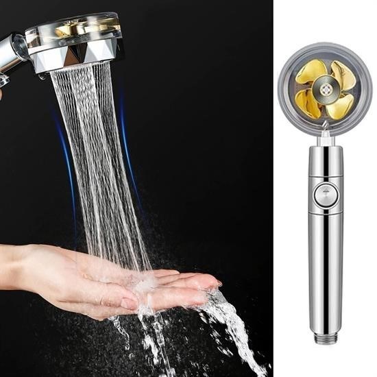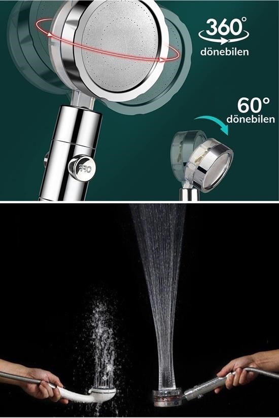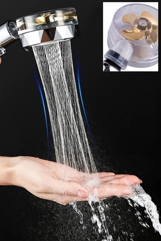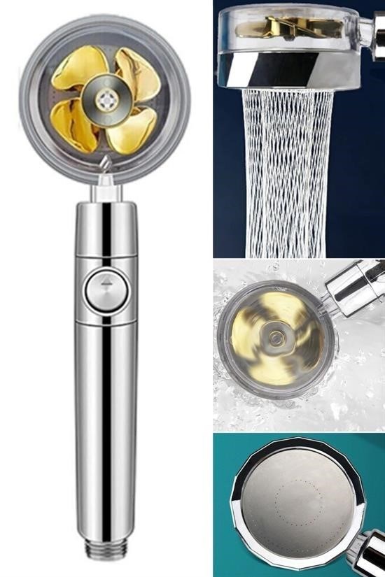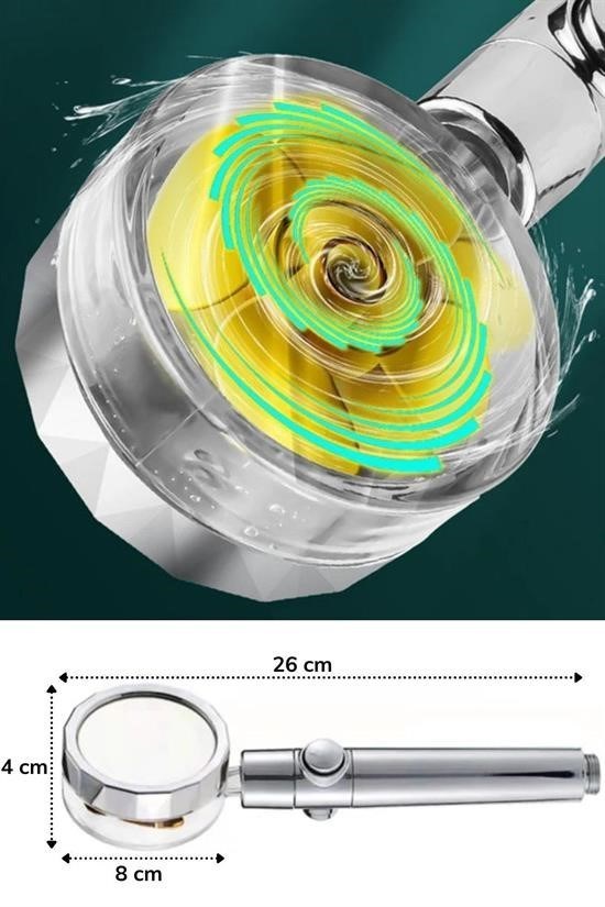 BUFFER® Duş Başlığı Turbo Pervaneli Serinletici Tasarım Start Stop Tuşu Duş Başlığı 360 Derece Döner