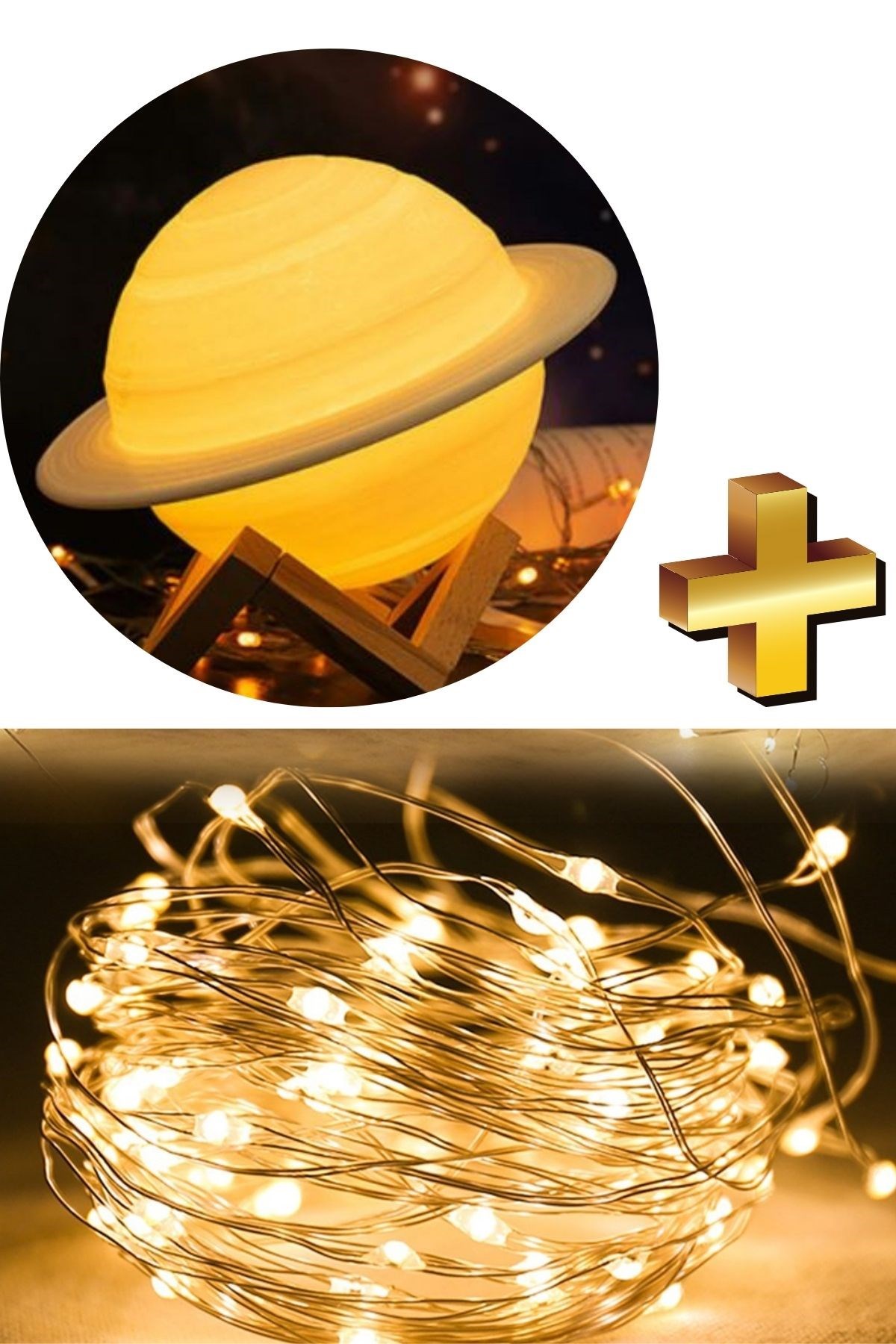 BUFFER® 3D Print Dokunmatik 3 Renk USB Şarjlı Gece Lambası (Kumandasız) ve Peri Led Işık 5 Mt Sarı