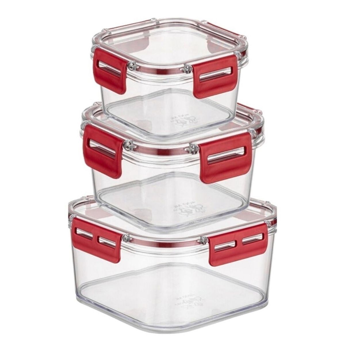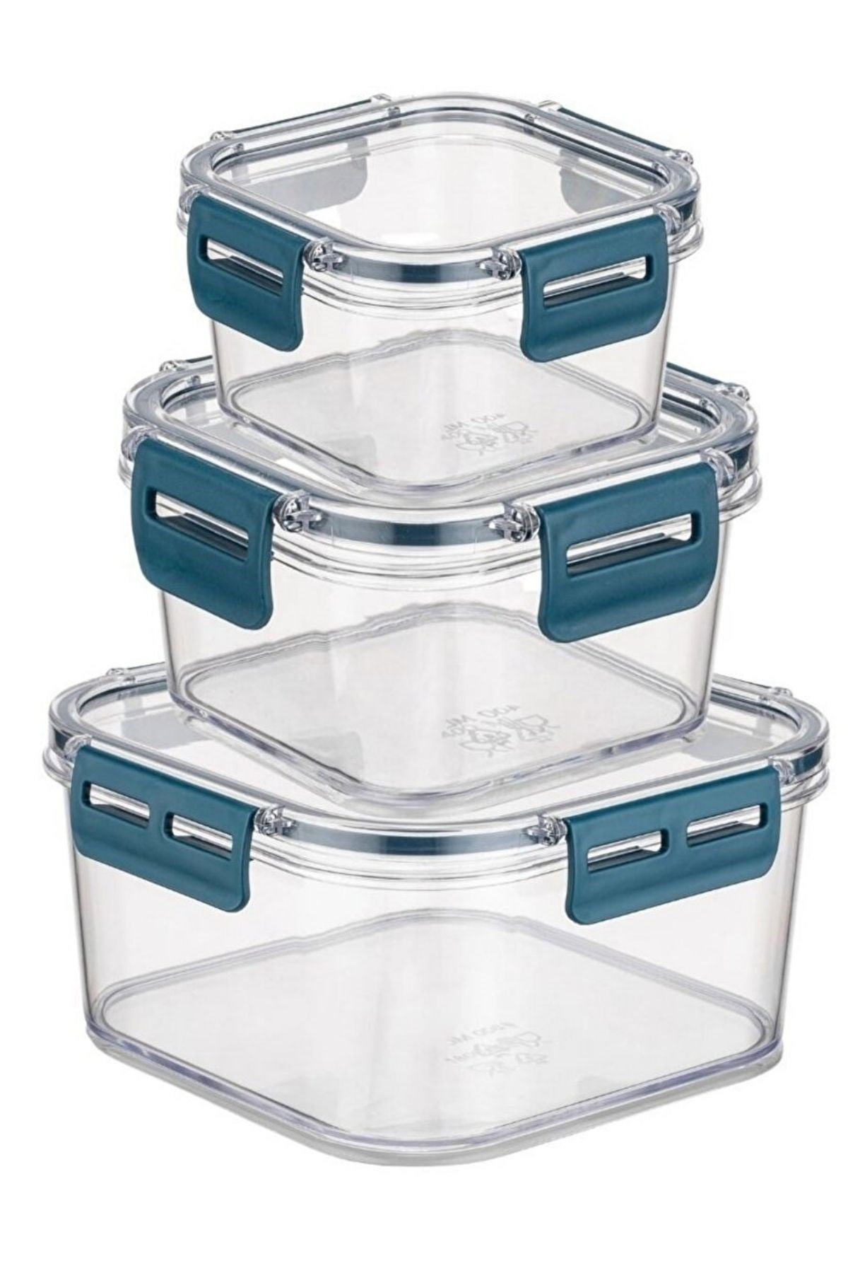 BUFFER® 3'lü Pratik Silikon Contalı Sızdırmaz Kapaklı Sağlam İstiflenebilir Saklama Kapları