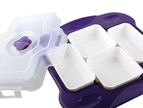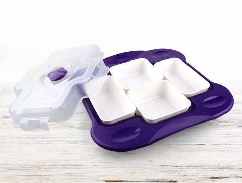 BUFFER® 4 Bölmeli Pratik Kapaklı Tepsili Kahvaltı Tabağı Kasesi Seti