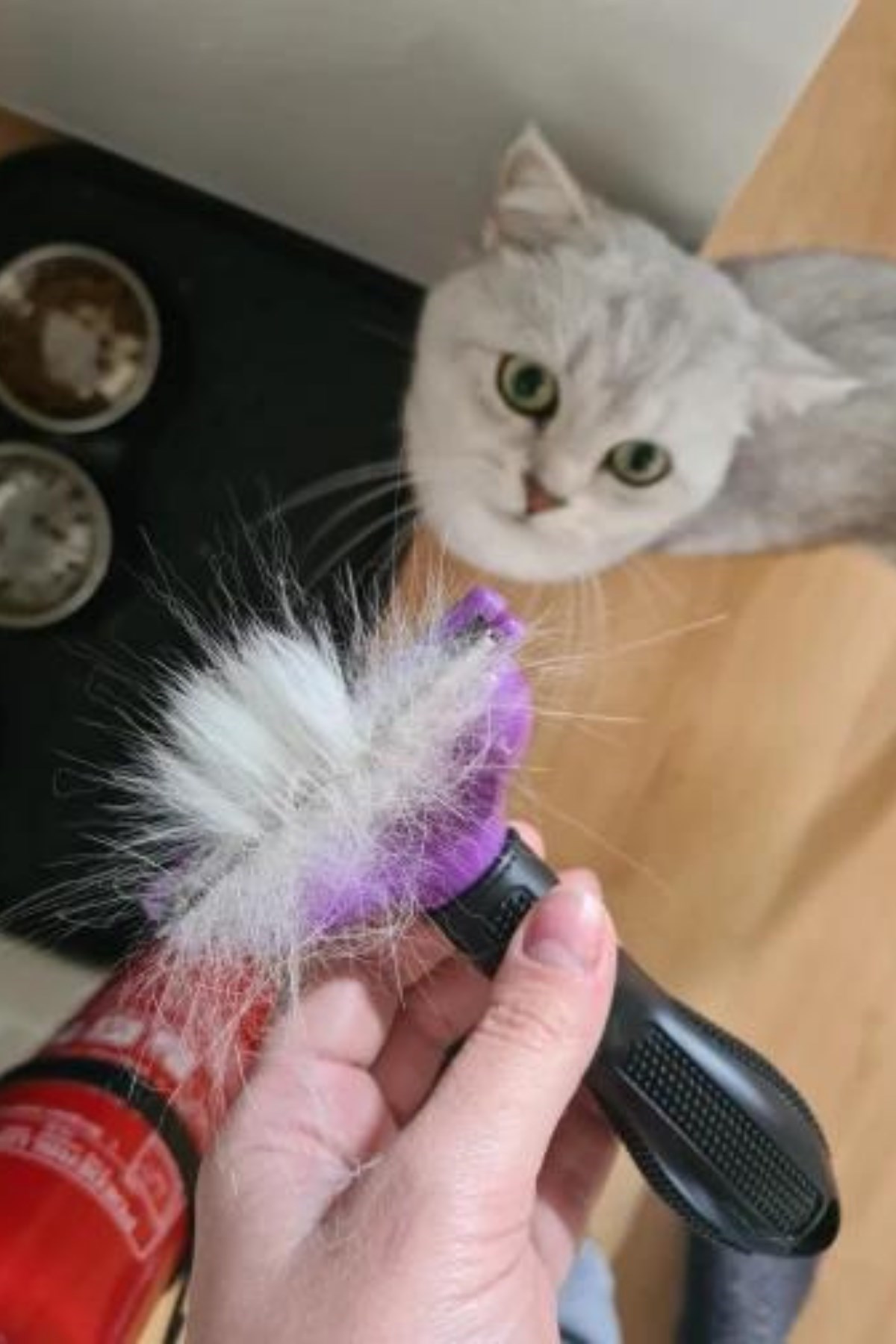 Ergonomik kedi tüy toplama aleti ile kedilerinizin tüylerinin etrafa saçılmasına engel olabilirsiniz
