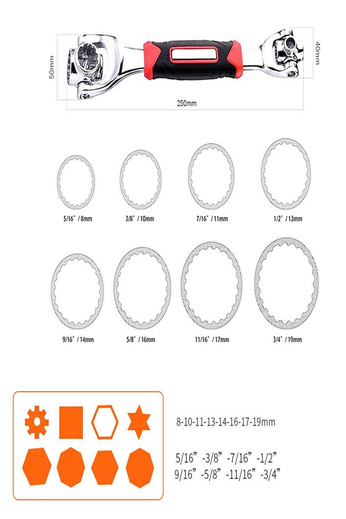 Lokma El Aleti, Çeşitli metrik ölçüleri için uygundur: 19 mm 3/4 ", 17 mm 11/16", 16 mm 5/8 ", 14 mm 9/16", 13 mm 1/2 ", 11 mm 7/16" , 10 mm 3/8 ", 8 mm 5/16"