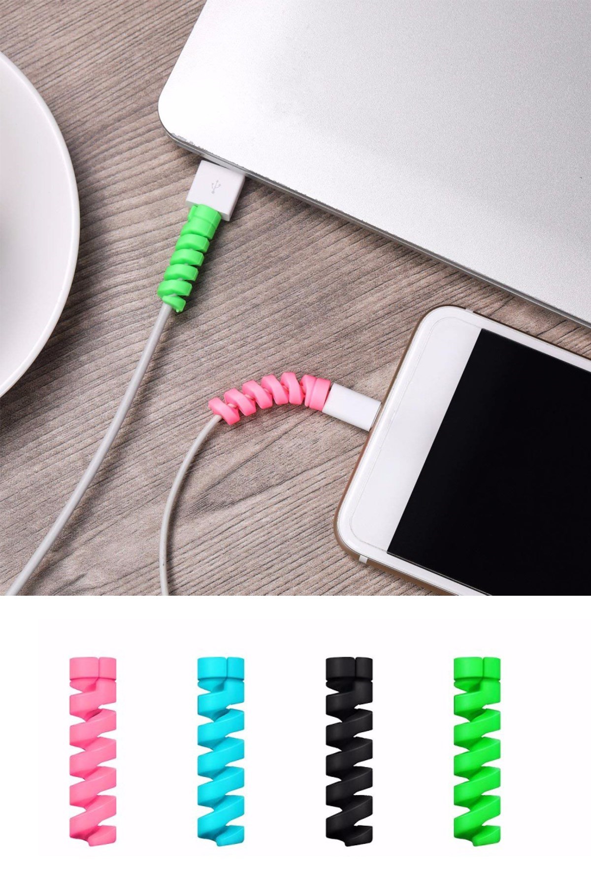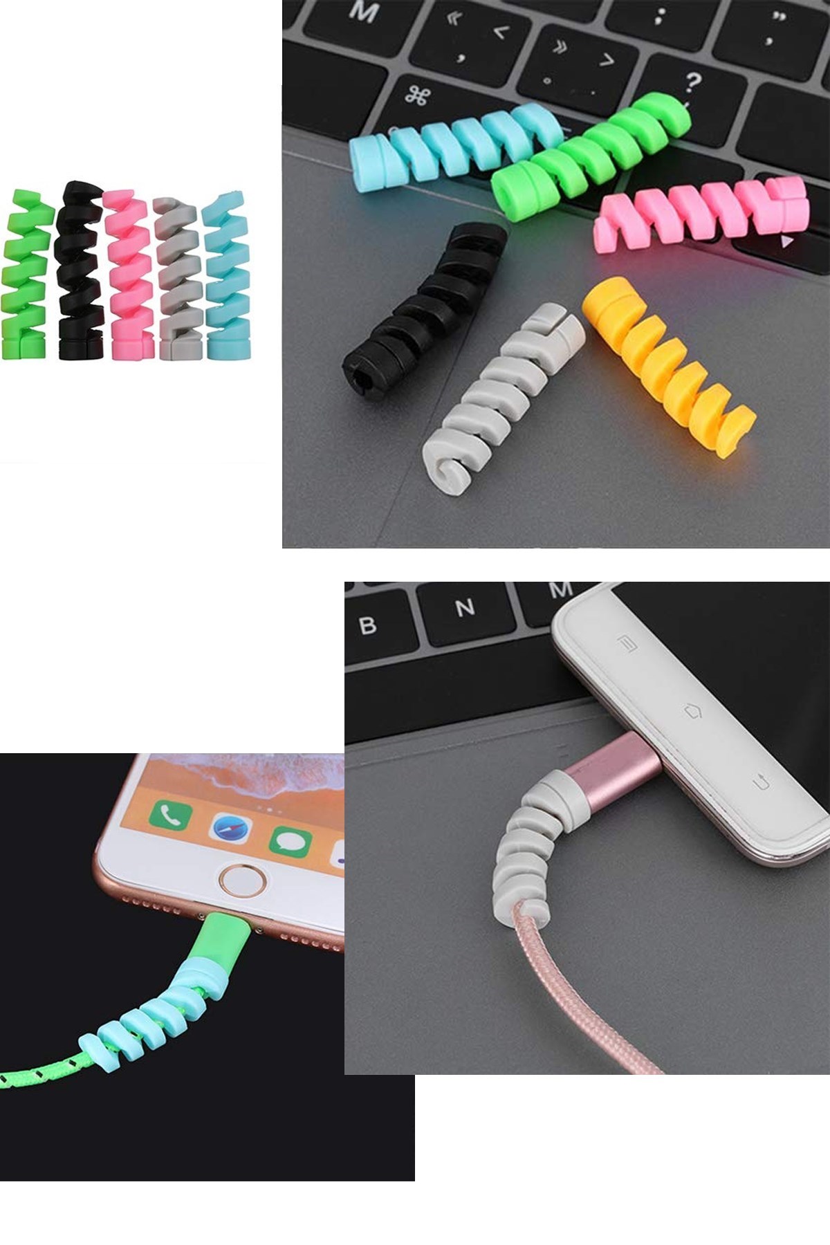 4'lü Şarj Kablosu Koruyucu Silikon Spiral Yay Aparat