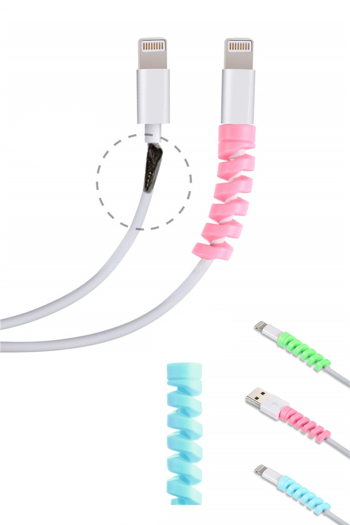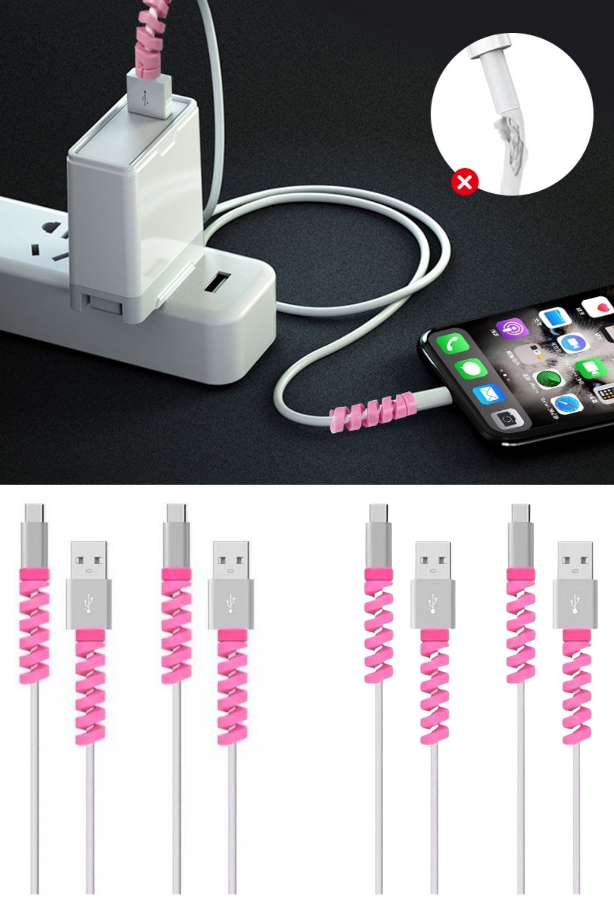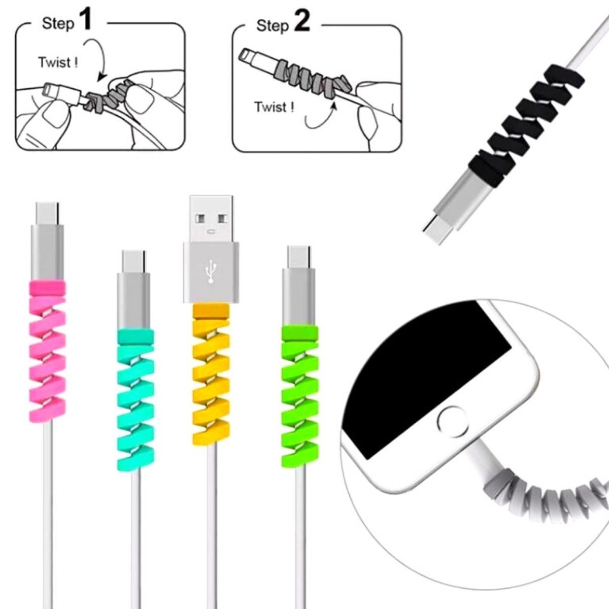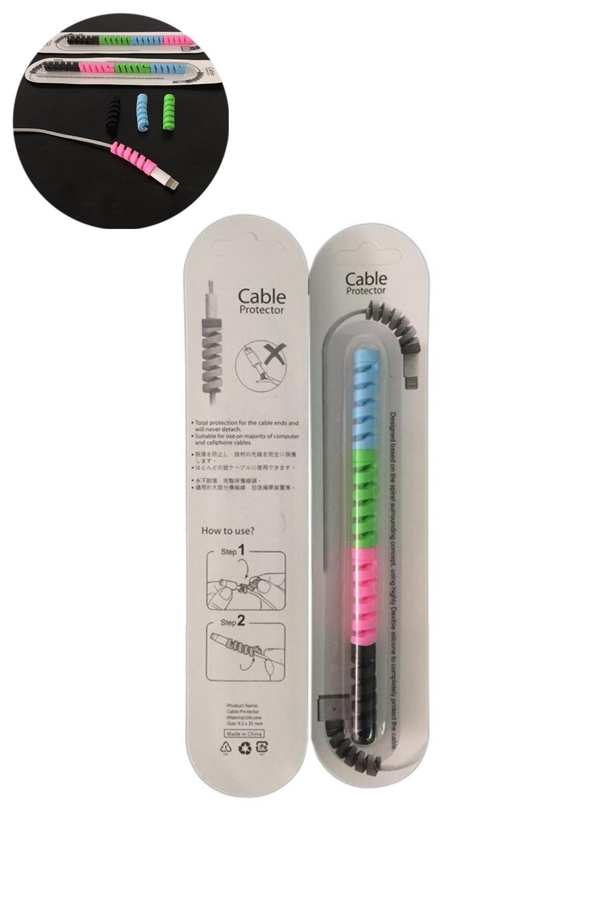 BUFFER® 4lü Apple, Android Şaj Kablosu Koruyucu Silikon Spiral Yay Aparat